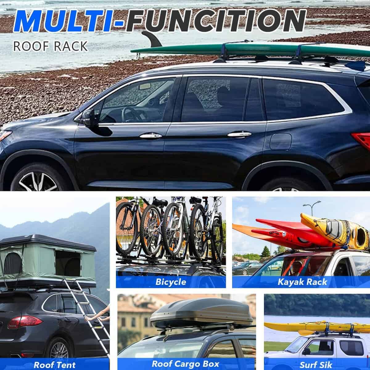 3. FUNCIÓN: Maravillosa solución para transportar algo en el techo del automóvil, como kayaks y canoas, equipaje, tablas de snowboard, bicicletas, cajas de carga, cañas de pescar, etc.