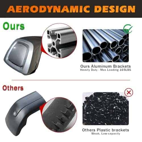 2. – Material de Alta Calidad: Solo utilizamos aleación de aluminio de alta calidad para construir nuestros rieles para techo, lo que mejora la resistencia y durabilidad para un uso prolongado.