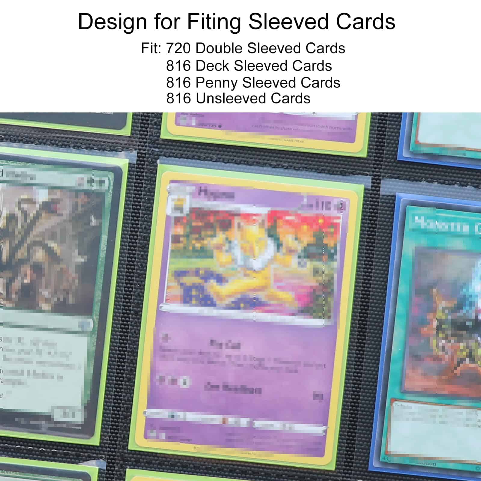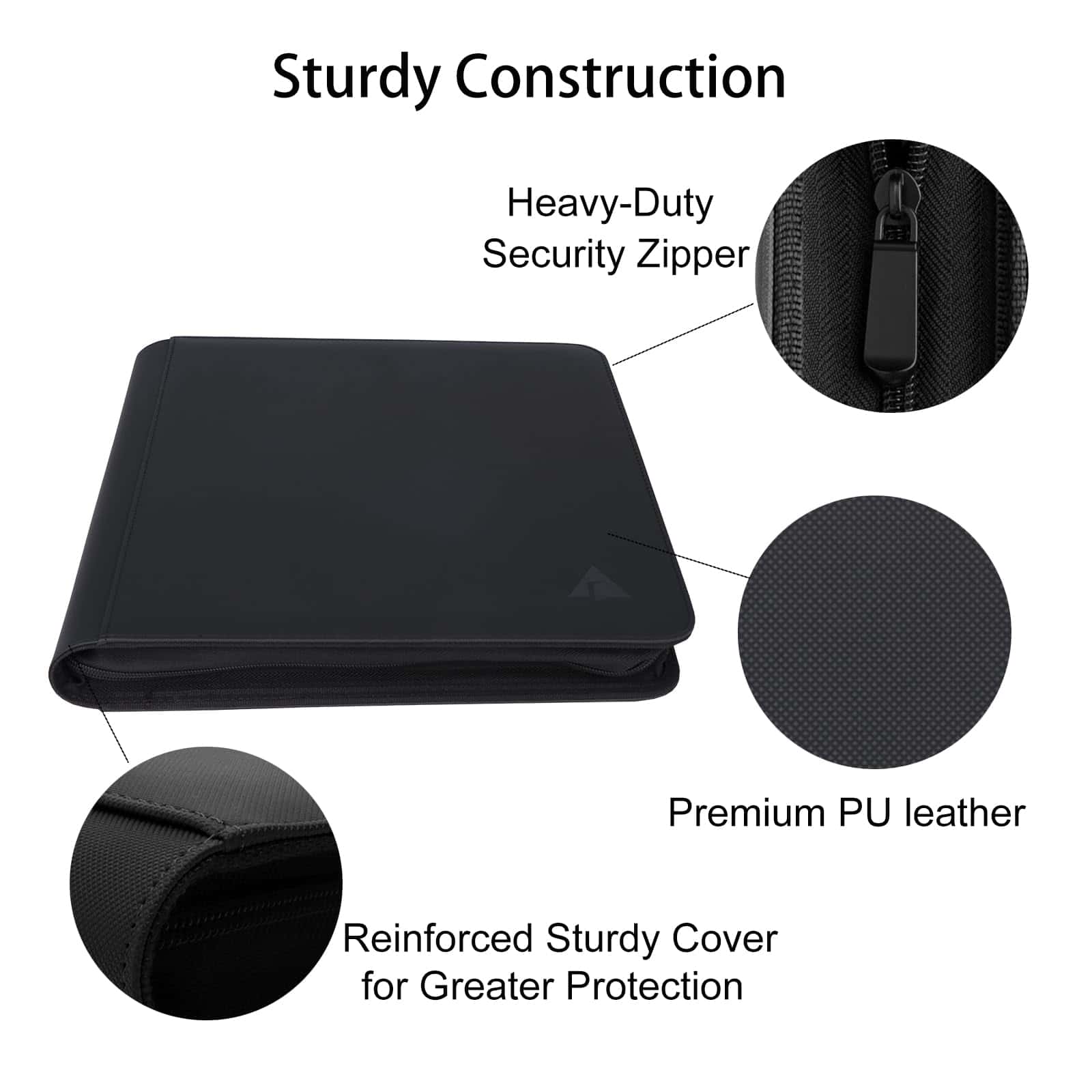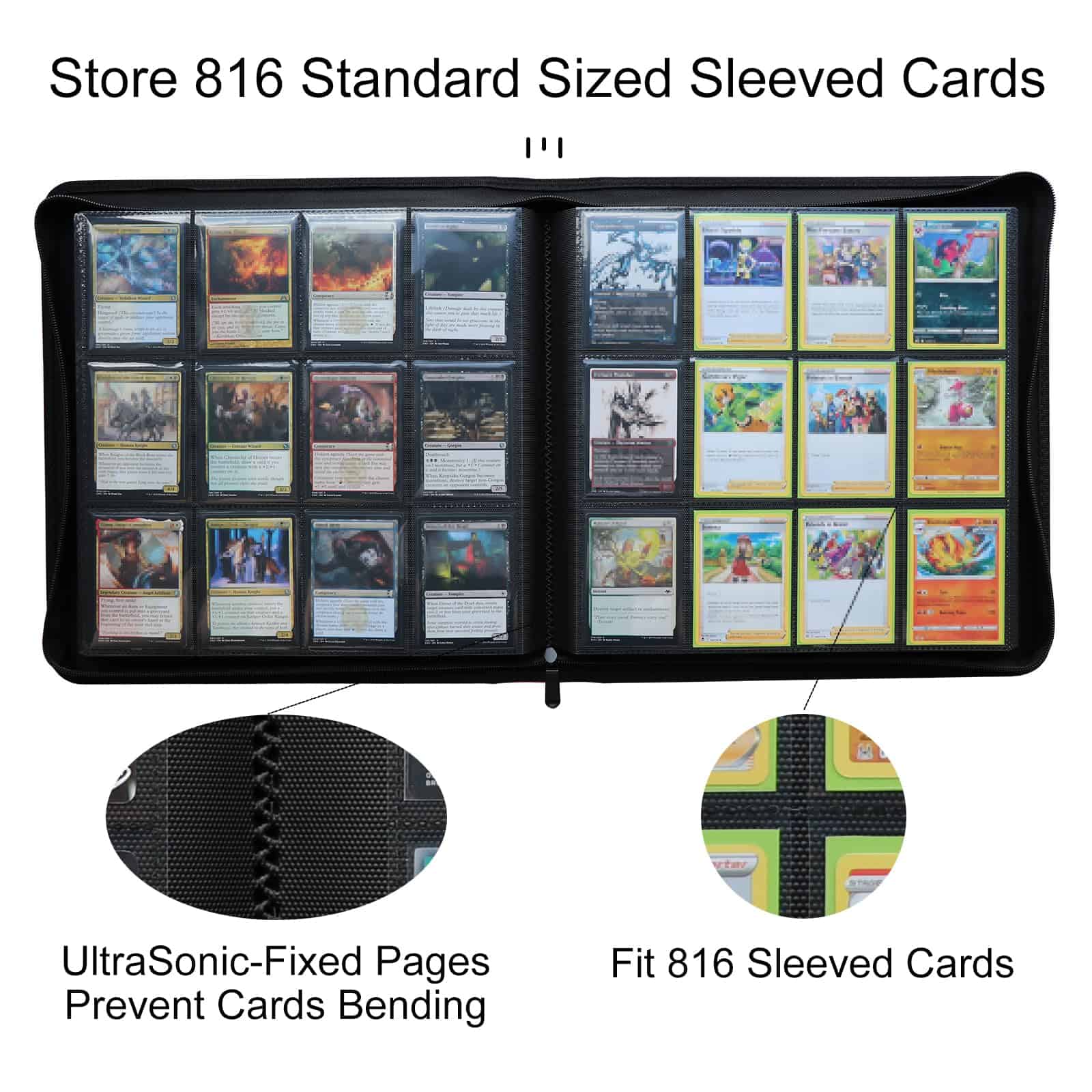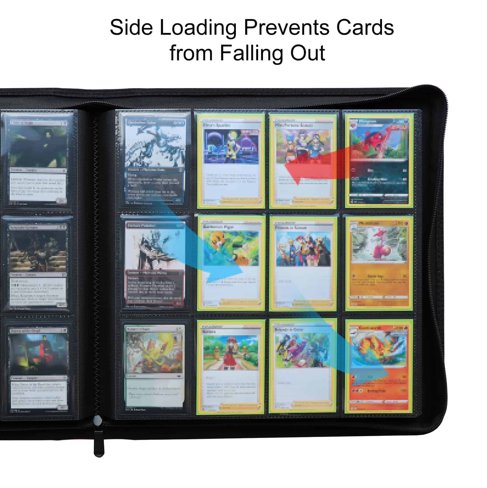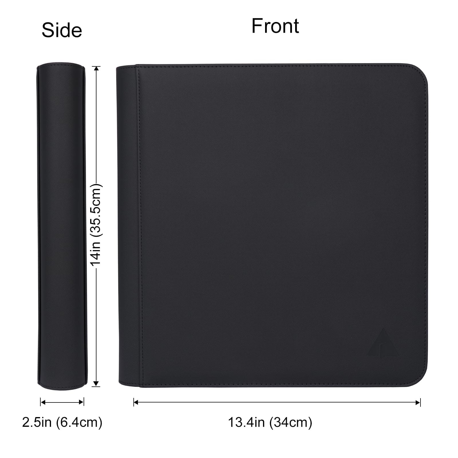 Rieton Carpeta de Tarjetas de 12 Bolsillos 800+ Bolsillos para Cartas con Fundas, Carpeta Grande de Carga Lateral sin Anillos para Álbum de Cartas Coleccionables. Capacidad máxima – 12 bolsillos dobles por página, un total de 34 páginas (sin clips/páginas sueltas) que contienen un total de 816 cartas coleccionables. Con una capa acolchada ligera incorporada en cada página, evitando que tus colecciones se rayen o se abollen manteniéndolas en condiciones óptimas. Construcción premium – La cremallera de calidad mantiene las cartas protegidas e intactas cuando no se usan. Cubiertas frontales y traseras acolchadas y extra rígidas hechas de material antideslizante y resistente al agua. Páginas premium – Bolsillos de doble cara con respaldo negro de baja fricción, creando una separación entre los bolsillos delanteros y traseros, además de brindar a las cartas un aspecto clásico enmarcado. Carga lateral – Bolsillos de carga lateral diseñados para mantener las cartas de intercambio de forma segura en su lugar. La cremallera de alta calidad mantiene la carpeta cerrada cuando no se usa. Material seguro – Fabricado con material libre de ácido y sin PVC, seguro para archivos. Garantía de 12 meses a partir de la fecha de compra. Tamaño del bolsillo 3.7 x 2.7 pulgadas, compatible con todas las cartas como Magic the Gathering, YuGiOh !, Baloncesto, Béisbol, Fútbol, Fútbol Soccer, Star Wars X-Wing, Force Of Will, Cardfight Vanguard, WoW, Panini XL y Match, Dragon Ball Z, ¡y muchas más! Compatible con todas las fundas protectoras de cartas estándar.
