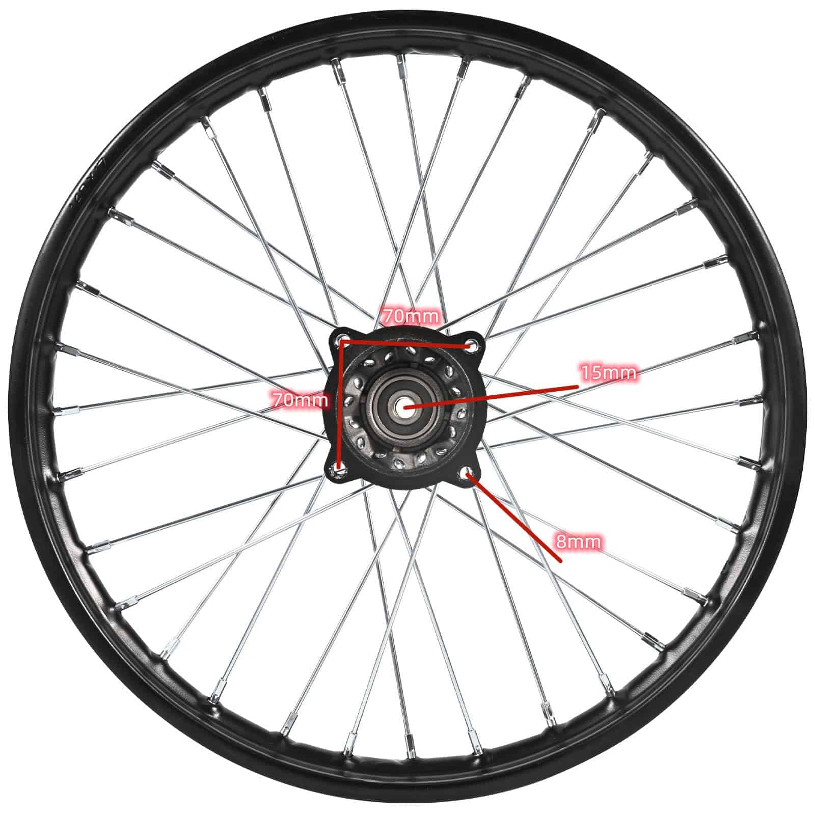 Rin de rueda Trkimal para Motocross Off Road Dirt Pit Bike. Este rin está fabricado en una resistente combinación de acero y aleación de aluminio, lo que garantiza durabilidad y resistencia. Con un tamaño de 17 pulgadas y rodamientos de 15 mm, es compatible con llantas delanteras de 70/100-17. Perfecto para motocicletas de Motocross, Pit Dirt Rocket de 110CC a 160CC, así como las marcas chinas de Pit Bike como SSR, YCF, IMR, etc. Si tienes algún problema, no dudes en contactarnos, ¡estamos aquí para ayudarte en todo momento!