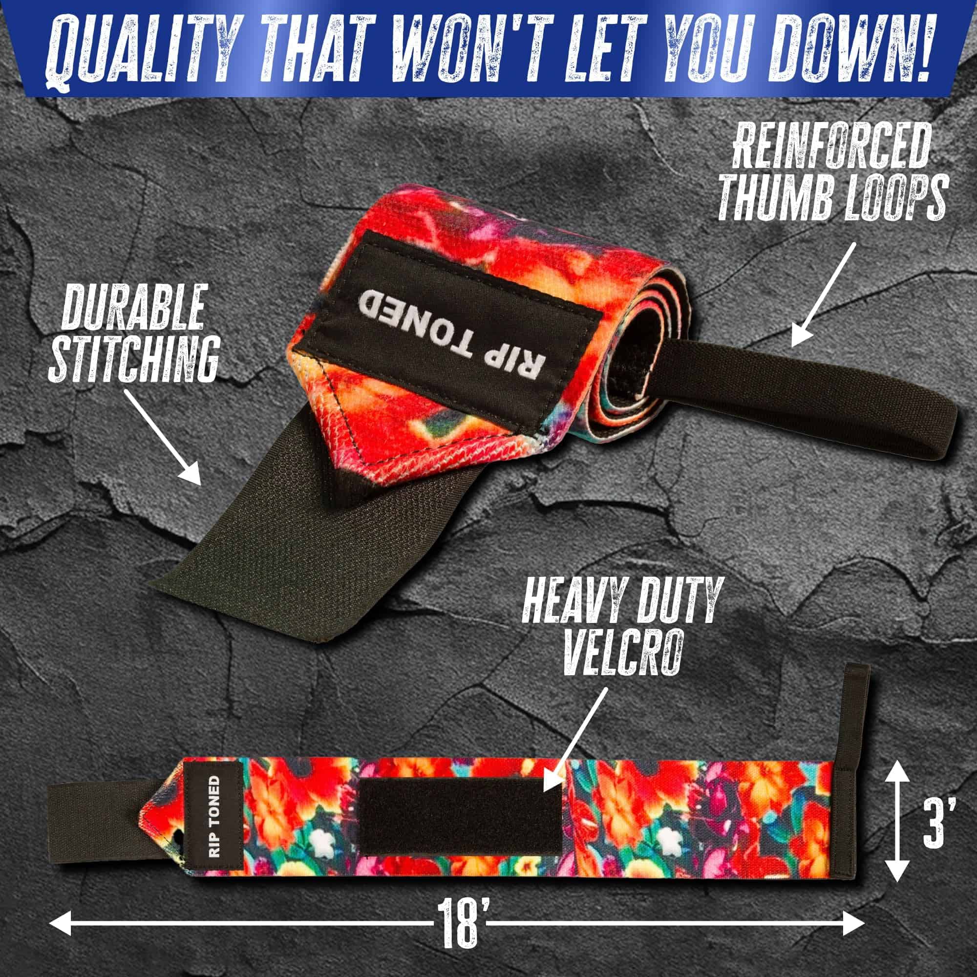 1. SOPORTE INIGUALABLE PARA MUÑECAS PARA LEVANTAMIENTO DE PESAS Empuje sus límites con las muñequeras premium de 18 pulgadas de Rip Toned, aprobadas por el Campeón Mundial de Powerlifting Kevin Weiss. Diseñadas para powerlifting, culturismo y levantamiento de pesas, brindan una estabilidad superior para proteger sus muñecas durante press de banca, levantamientos muertos y levantamientos sobre la cabeza. La mezcla de elasticidad pesada patentada de Rip Toned garantiza soporte sin restricciones de movimiento. Levante con confianza y reduzca el riesgo de hiperextensión u otras lesiones.