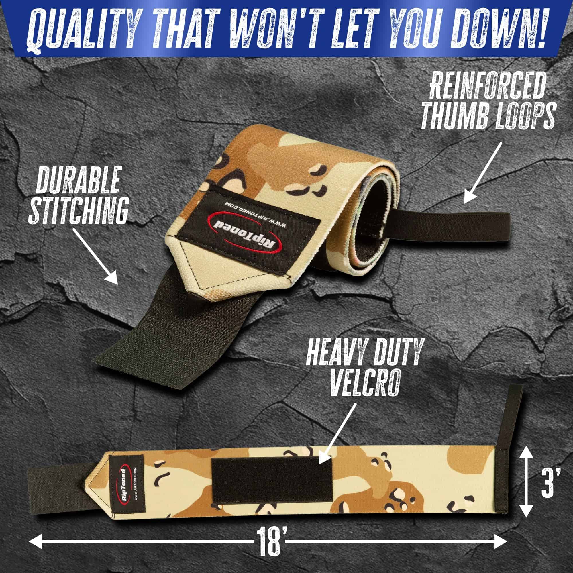 1. SOPORTE DE MUÑECA INIGUALABLE PARA LEVANTAMIENTO DE PESAS PESADAS Supera tus límites con los vendajes premium de 18 pulgadas de Rip Toned, aprobados por el Campeón Mundial de Powerlifting, Kevin Weiss. Diseñados para powerlifting, culturismo y levantamiento de pesas, brindan una estabilidad superior para proteger tus muñecas durante press de banca, peso muerto y levantamientos por encima de la cabeza. La mezcla elástica resistente de alta resistencia de Rip Toned garantiza soporte sin restringir el movimiento. Levanta con confianza y reduce el riesgo de hiperextensión u otras lesiones.