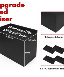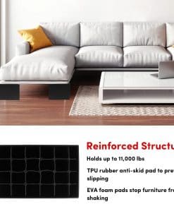 Los elevadores para cama de 5 pulgadas de alta resistencia son ideales para elevar todo tipo de muebles, incluyendo camas, sofás, mesas, sillas, etc. Pueden ser utilizados para muebles pesados para proteger tus muebles y pisos de daños, son compatibles con la mayoría de tamaños de muebles y ayudan a mejorar la calidad del sueño y a aliviar el dolor de espalda. ¡Dale a tus muebles la altura y soporte adicional que necesitan con estos elevadores para cama de calidad premium!