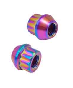 Consejos de seguridad: El hardware de las ruedas es un componente de seguridad importante. Asegúrate de que el tamaño de rosca y la longitud/ancho de estos tornillos de rueda sean los correctos antes de la instalación. Además, asegúrate de que el asiento del tornillo de la rueda coincida con estos tornillos de rueda. La instalación incorrecta del hardware es insegura y puede provocar que el ensamblaje de la rueda/llanta se afloje o se caiga mientras el vehículo está en movimiento. Asegúrate de que los hilos en el cubo estén completamente limpios para eliminar restos de zinc de los pernos de rueda previamente instalados. Cualquier zinc que quede puede provocar fatiga y agrietamiento de la aleación de titanio.