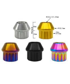 Detalles del producto: Si eres un entusiasta orientado al rendimiento que busca ahorrar peso donde sea posible o simplemente quieres un juego de tornillos de rueda de muy alta calidad que no se oxiden, los Tornillos de Rueda de Titanio son exactamente lo que necesitas. Los tornillos de rueda de titanio son un 45% más ligeros que los pernos de acero del mismo tamaño, lo que reduce la masa rotacional en el vehículo. Están mecanizados por CNC a partir de una aleación de titanio recocida y cuando se probaron los requisitos de carga de prueba de pernos de clase 10.9, no mostraron signos de fatiga o falla. La venta directa de fábrica garantiza la calidad y ha pasado la certificación ISO9001.