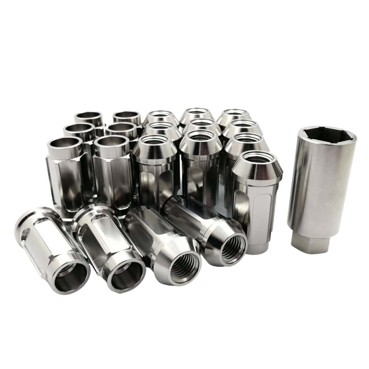 El titanio también puede resistir los ciclos continuos de calentamiento y enfriamiento comunes en ruedas de alto rendimiento, y los roscados enrollados tienen una excelente resistencia a la fatiga. Un conjunto de 20 piezas con una llave de titanio. Ventas directas de fábrica con garantía de calidad que ha pasado la certificación ISO9001. ¿Por qué no darse la oportunidad de probarlo?