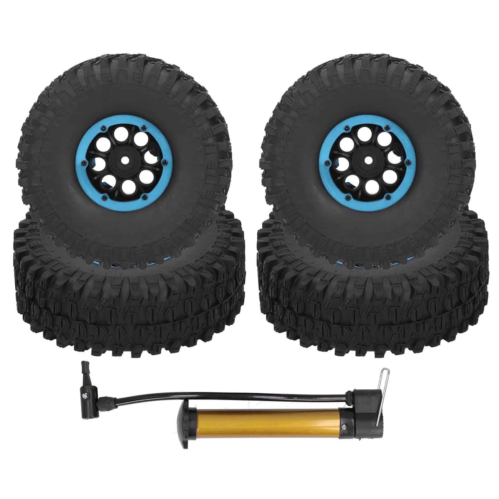 Característica: 1. Mejora la forma de la piel del neumático y mejora la capacidad de agarre del coche a control remoto. 2. Este producto es un neumático inflable de 1.9 pulgadas con un diámetro de 120 mm y una bomba. 3. Los neumáticos inflables pueden mejorar eficazmente la capacidad de absorción de impactos, mejorar la capacidad de agarre y mejorar la capacidad de vadeo del neumático. 4. Con 4 neumáticos, puede satisfacer sus necesidades de uso y reemplazo, muy práctico. 5. Gran mano de obra, reemplazo perfecto para el antiguo y tiene una larga vida útil. Especificación: Tipo de artículo: Neumáticos de Carreras RC Material: Aleación de aluminio + goma Diámetro: Aprox. 120mm / 4.7in Ancho: Aprox. 40mm / 1.6in Cantidad: 1 set (4pcs) Modelos Adecuados: coche a control remoto 1/10, coche de escalada SCX10 TRX4 TRX6 D90 y otros modelos 1/10. Lista de Paquetes: 4 x Neumático 1 x Inflador