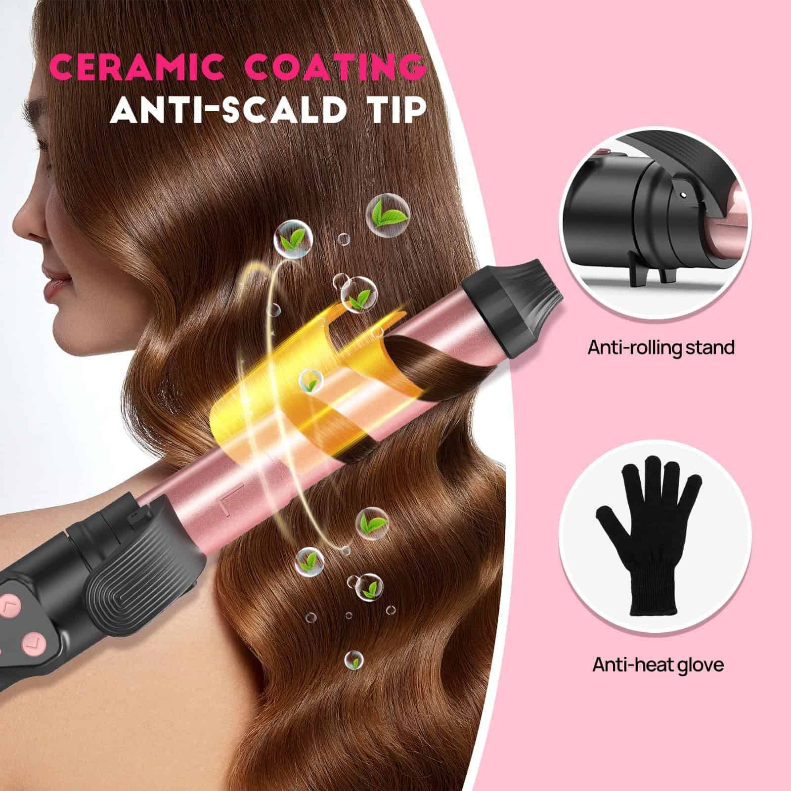 2. Fácil de cambiar el barril para diferentes necesidades de rizado – Rizador automático 3 en 1 con 0.75/1/1.25 tres tamaños de barriles son adecuados para principiantes, estilistas o entusiastas del cabello para cumplir con diversas necesidades de estilo. Los rizadores están diseñados para la vida diaria, fiestas de cumpleaños, citas, banquetes y otros eventos.