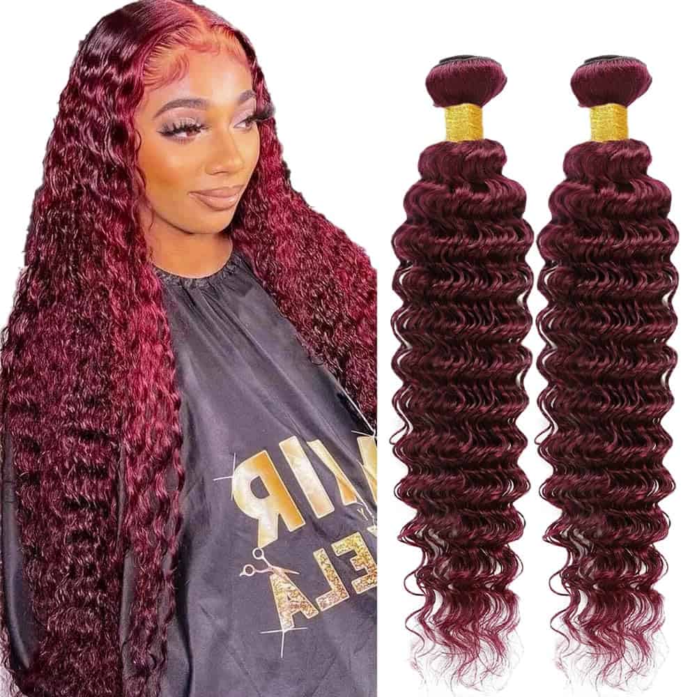 Rizos Profundos de Pelo Humano en 99J Borgoña – 2 Paquetes