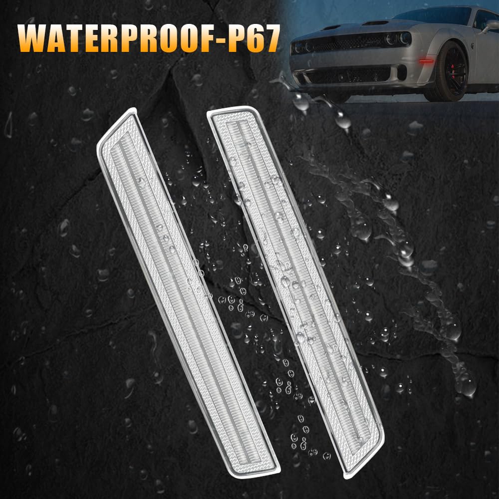 1. DISEÑO A MEDIDA Estas luces marcadoras laterales LED son una mejora OEM. Compatibles con Dodge Challenger 2015 2016 2017 2018 2019 2020 2021 2022 2023 cuerpo regular ÚNICAMENTE (No para SRT Hellcat Widebody). Reemplace el número de pieza OEM de Delantera OEM No. 68195788AB, 68195789AB; Trasera OEM No. 68195796AB, 68195797AB.