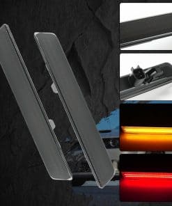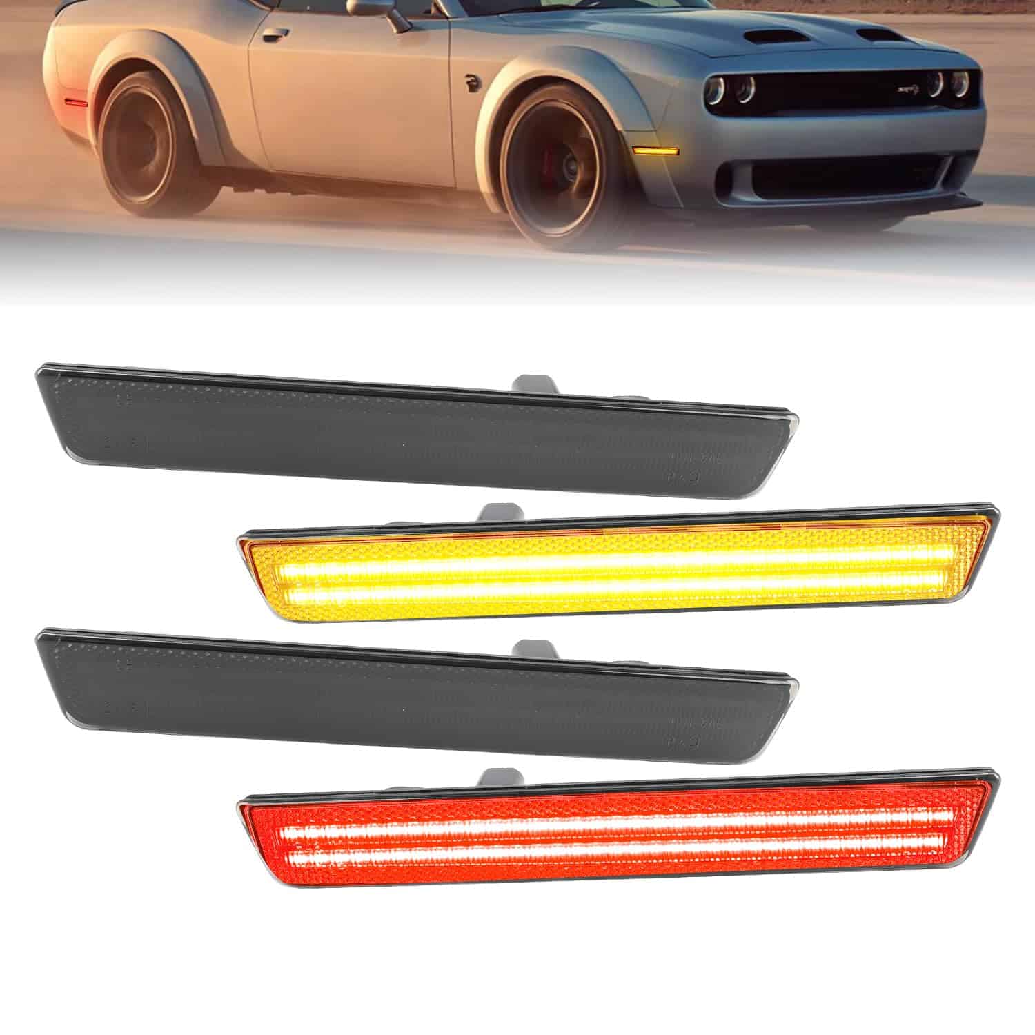 Las luces marcadoras laterales LED ROCCS son una excelente actualización OEM para tu Dodge Challenger 2015-2023. Están diseñadas para adaptarse perfectamente al cuerpo regular del vehículo, reemplazando las luces originales de fábrica con un estilo LED moderno y sofisticado. La combinación de ámbar en la parte delantera y rojo en la parte trasera, con lentes ahumadas, le da a tu Challenger un aspecto distintivo y personalizado.