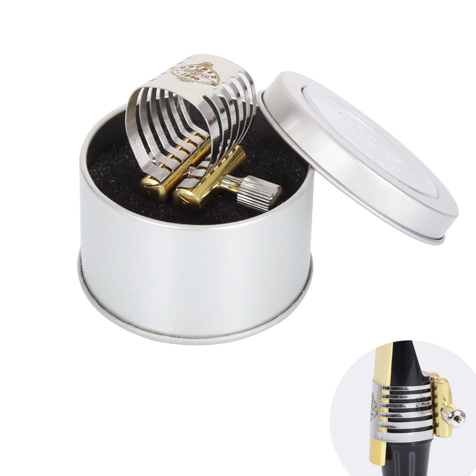 Nombre del Producto: Rochix Ligadura de Acero Inoxidable Plateado para Clarinete Bb/Saxofón Alto