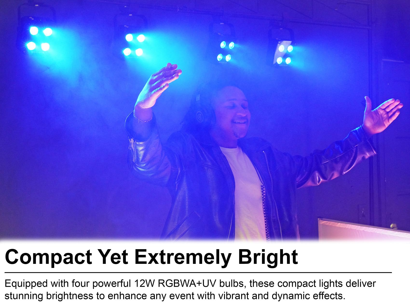 3. COMPACTO Y EXTREMADAMENTE BRILLANTE: El MINI RF4 V2 es 4 veces más brillante que el MINI RF1. Su diseño ligero y portátil facilita la configuración y el transporte, perfecto para cualquier evento.
