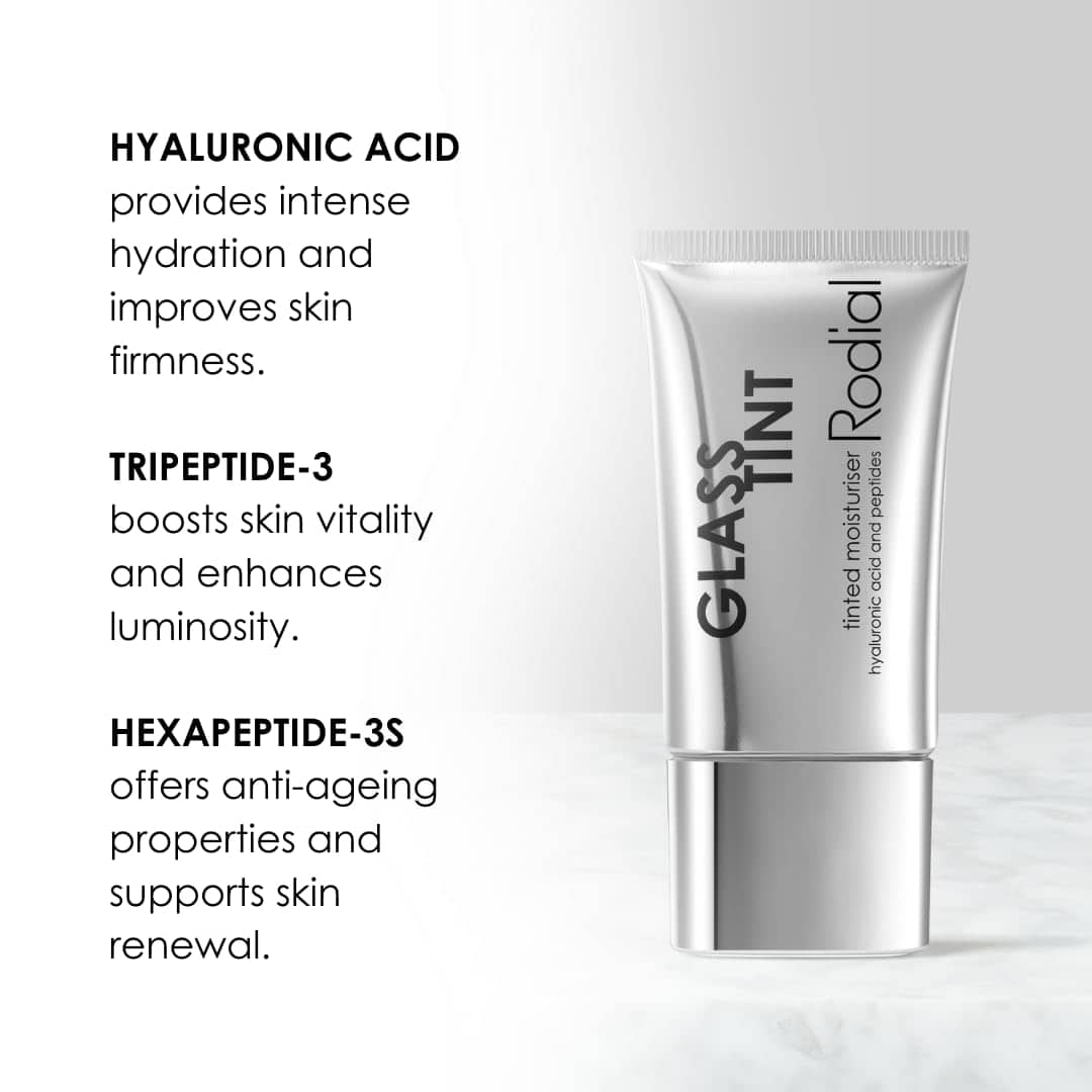 Descubre el poder transformador de los Tintes de Cristal de RODIAL, un hidratante con color basado en cuidado de la piel al 86% que redefine tu rutina de cuidado de la piel y maquillaje. Diseñada con activos avanzados para el cuidado de la piel, esta fórmula innovadora combina hidratación, beneficios antienvejecimiento y cobertura impecable en un solo paso. Cada aplicación brinda una dosis nutritiva de ácido hialurónico de peso molecular medio, que hidrata profundamente y rellena la piel, resultando en una tez suave y uniforme con un brillo juvenil y luminoso. El secreto de nuestros Tintes de Cristal radica en la potente mezcla de tripéptido-3 y hexapéptido-3. Estos péptidos avanzados trabajan en armonía para realzar la vitalidad y luminosidad de la piel mientras estimulan la producción de colágeno y promueven la renovación de la piel. El resultado Una tez que parece revitalizada, con signos reducidos de envejecimiento y un acabado naturalmente radiante. Nuestros Tintes de Cristal ofrecen una textura hidro-fluida única que se siente increíblemente ligera en la piel. Se mezcla sin problemas, proporcionando una cobertura media ajustable que se adapta a las necesidades de tu piel. Ya sea que desees un aspecto ligero y natural o un acabado más pulido, los Tintes de Cristal te brindan la flexibilidad para crear el look deseado con facilidad. Disponibles en seis tonos versátiles, los Tintes de Cristal de RODIAL están diseñados para complementar una amplia gama de tonos de piel. Cada tono se funde en la piel, garantizando un ajuste perfecto y una apariencia uniforme e impecable. Adecuada para todo tipo de piel, esta fórmula probada por dermatólogos es tu solución ideal para lograr una tez naturalmente luminosa. Para aquellos que buscan una protección solar adicional, nuestros Tintes de Cristal se combinan perfectamente con las Gotas SPF50 de RODIAL, proporcionando un escudo integral contra los dañinos rayos UV manteniendo el brillo radiante y saludable por el que se conocen los Tintes de Cristal. Experimenta la fusión definitiva en cuidado de la piel y maquillaje con los Tintes de Cristal de RODIAL, tu clave para una tez radiante y juvenil todos los días.
