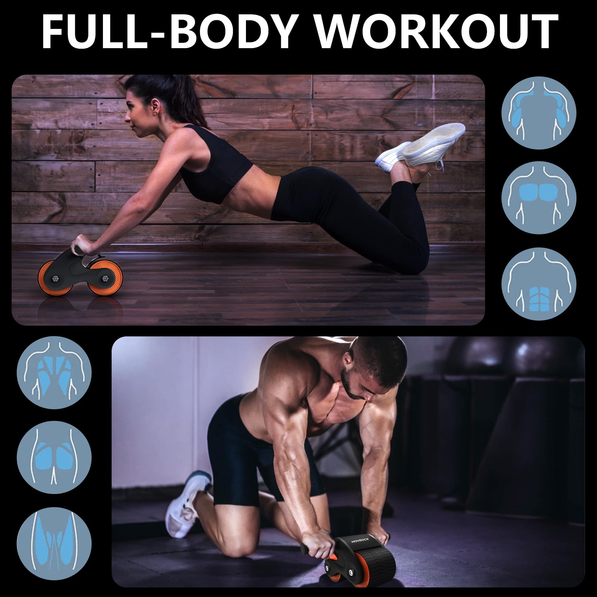 Rodillo Abdominal Movrock con Rebote Automático para Hogar,