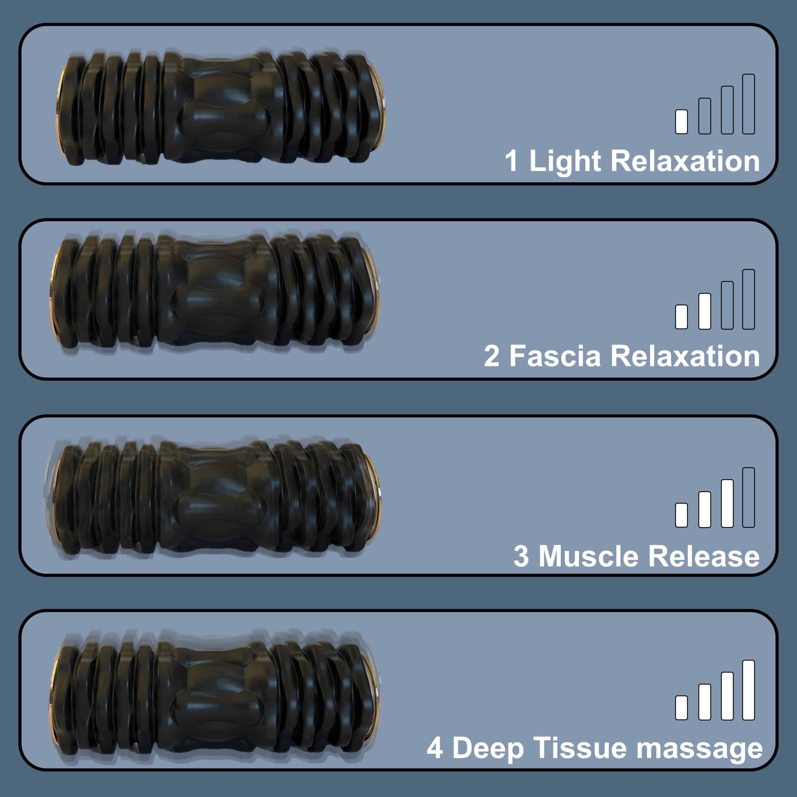 1. Modos de vibración versátiles: Con 4 modos de vibración distintos, puedes personalizar tu experiencia de masaje para enfocarte en diferentes grupos musculares y preferencias, desde suaves pulsaciones hasta masajes de tejido profundo.