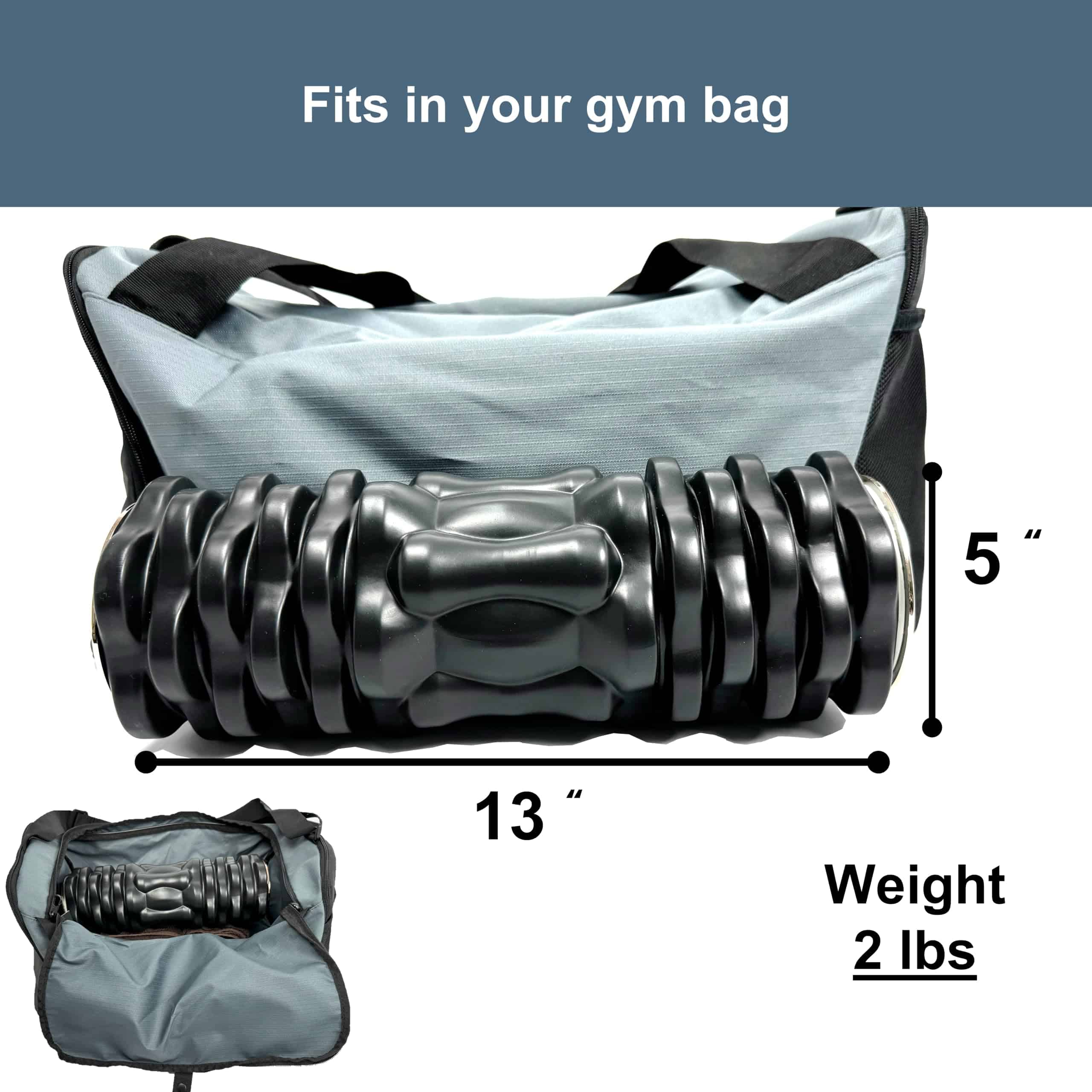 3. Portátil y ligero: Con un peso ligero de 2 libras y dimensiones de 5 por 13 pulgadas, este rodillo de espuma está diseñado para caber fácilmente en tu bolso de gimnasia o bolso de viaje para llevar contigo el rodillo de espuma a todas partes.