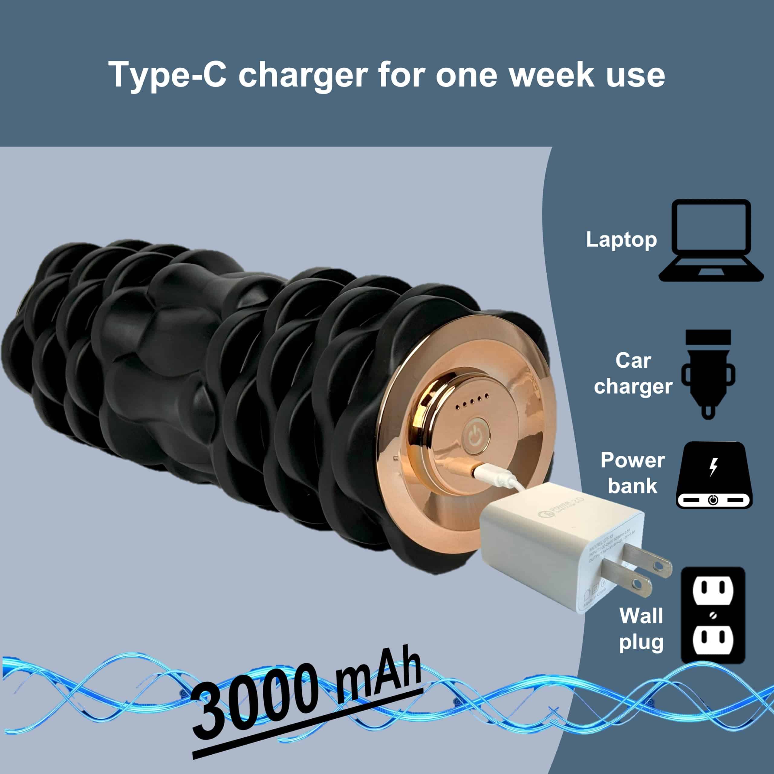 2. Batería de larga duración: Equipado con una batería recargable duradera, nuestro rodillo de espuma garantiza que tengas suficiente energía para múltiples sesiones sin preocuparte por quedarte sin carga.