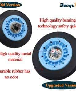 Rodillo de soporte del tambor del secador DC97-16782A y eje, que incluye el eje del rodillo y clips de montaje, se utiliza en secadoras. Esta parte mantiene el tambor mientras gira en las ruedas de soporte. Cuando el rodillo comienza a desgastarse, se lubrica a sí mismo, por lo que no se necesita grasa adicional. El paquete incluye 4 piezas de DC97-16782A. Este kit de reparación de secadora admita 30 días de devolución e intercambio. Compatible con muchos modelos de secadoras Samsung.