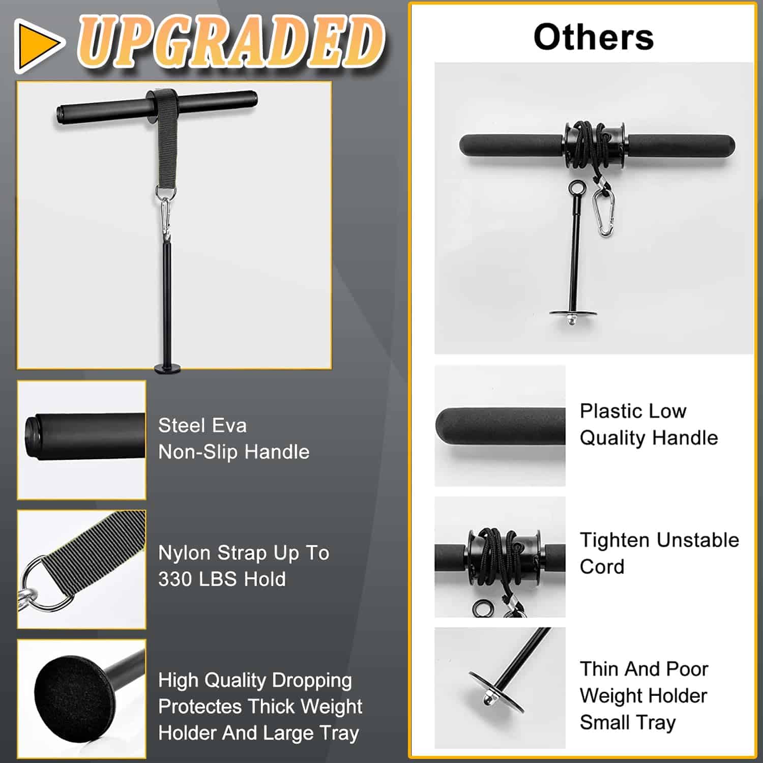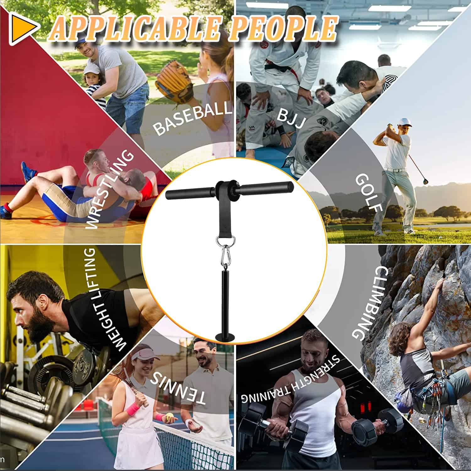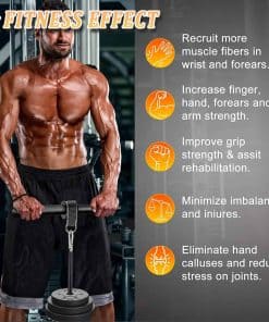 El Rodillo Ejercitador de Antebrazo con Asa Antideslizante es un producto de alta calidad diseñado para fortalecer los músculos de la muñeca y el antebrazo. Está fabricado con una estructura de acero resistente y cuerdas de nylon duraderas, junto con mangos de EVA de alta calidad que proporcionan un agarre fuerte y efectivo para practicar. La correa ajustable está hecha de material de nylon, lo que garantiza durabilidad y seguridad durante el ejercicio. Su estructura reforzada gruesa evita roturas y deslizamientos. El rodillo es fácil de usar, simplemente haga rodar el peso hacia arriba y abajo para mejorar la fuerza del brazo, muñeca y antebrazo. Es pequeño y portátil, lo que permite disfrutar del ejercicio en cualquier momento. Además, es adecuado para todas las placas de peso estándar de 1» y puede soportar un peso máximo de 120 lbs. Esta herramienta de fitness en casa es ideal para ejercitar los músculos y crear fuerza para diferentes deportes como béisbol, tenis, baloncesto y golf. ¡Obtén el Rodillo Ejercitador de Antebrazo con Asa Antideslizante y mejora tu rendimiento deportivo!