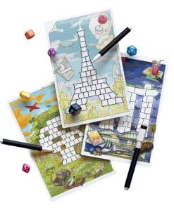 Participa en una serie de tableros de roll and write, cada uno ilustrando una de las emocionantes paradas en este viaje mundial, e intenta ser el primer jugador en completar todas las casillas y llegar a la cima del monumento.