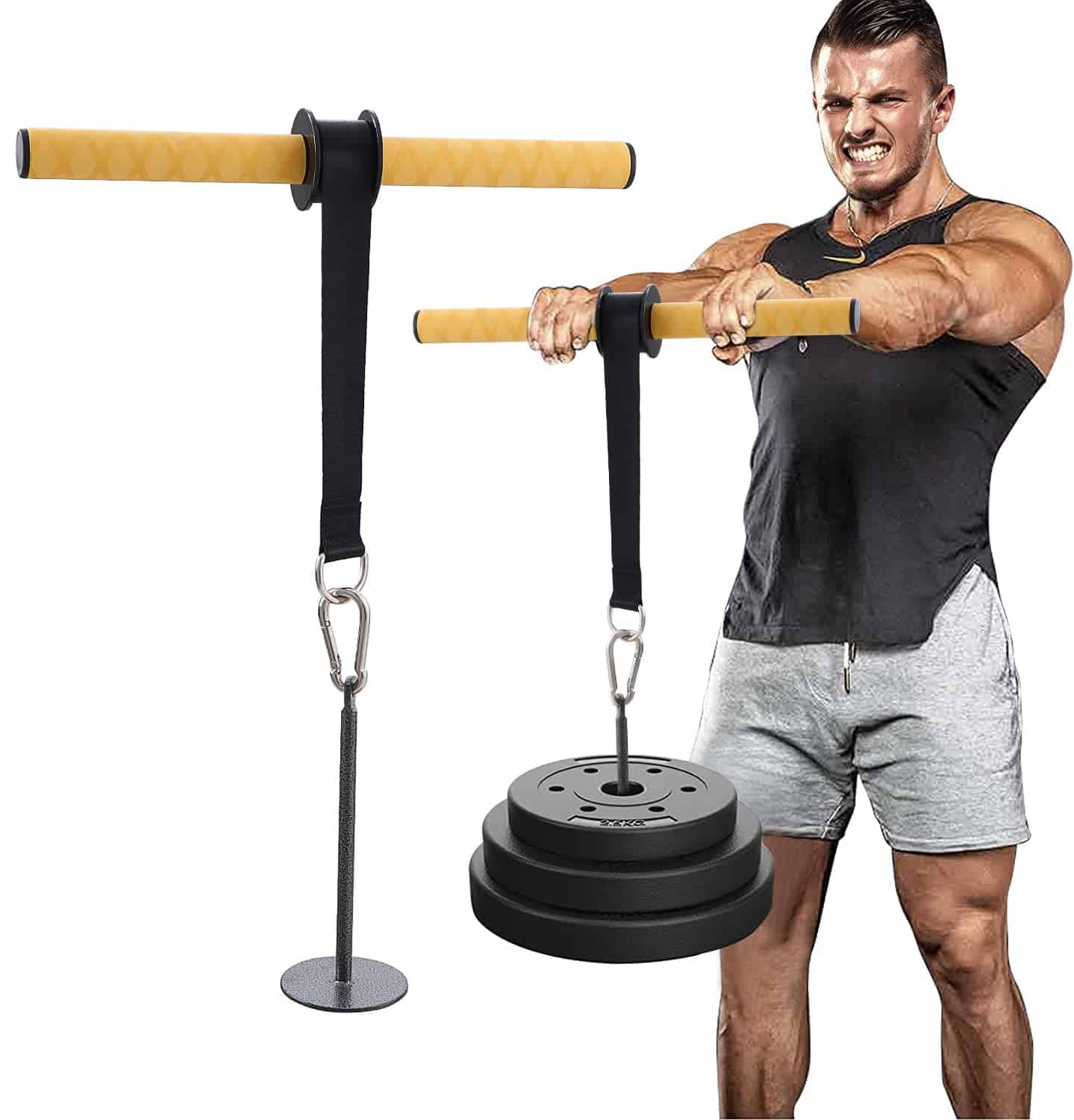 Tu Entrenador Personal de Fitness: ¿Sabías que usar un rodillo de muñeca para ejercitar impacto ayuda a aumentar la flexibilidad y fuerza en muñecas, dedos, antebrazos y codos para reducir lesiones y ayudar con un mejor movimiento? Aumenta el control de mano y la movilidad de muñecas. Combinación de Mangos Duraderos, Agarre Firme: El rodillo de antebrazos premium está hecho de un manillar de tubería de acero resistente, que se puede usar fácilmente con cualquier plato de peso de tamaño estándar, y p…ostura de peso no están incluidos en este producto. Increíblemente Útil Para Todos: Ideal para construir músculos y crear poder para el entrenamiento de muñecas y antebrazos. Además, el rodillo de muñeca y antebrazo es una excelente herramienta de rehabilitación para manos..