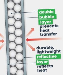 5. IDEAL PARA CLIMAS FRÍOS – La burbuja doble es adecuada para regiones más frías donde la nieve/el hielo es común. Las dos capas de burbujas dobles brindan protección adicional contra la humedad y las heladas. El aislamiento reflectante de burbujas actúa como barrera de vapor cuando se sella.