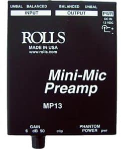 El Rolls MP13 Mini Microphone Preamp es un preamplificador de micrófono de un solo canal diseñado para proporcionar una solución pequeña, simple y económica para una variedad de aplicaciones. La unidad cuenta con entradas de 3,5 mm y XLR, salidas XLR y 1/4″, y un control de ganancia único con un indicador de clip. Incluye alimentación fantasma (+24V) para usar con un micrófono de condensador. La salida de 1/4″ está diseñada especialmente para ser utilizada como salida mono desequilibrada o como salida de auriculares estéreo. El cable de micrófono Pearstone SM Series XLR M a XLR F (6′) presenta conductores de cobre sin oxígeno de calibre 24, apantallamiento en espiral para proteger contra ruido EMI y RFI, y conectores moldeados de calidad. El doble blindaje de PVC conductor reduce el ruido electrostático y distingue la serie SM del resto de su clase. En la caja: Rolls MP13 Mini Microphone Preamp Fuente de alimentación externa Garantía limitada de 1 año Cable de micrófono XLR M a XLR F de la serie SM de Pearstone – 6′ (1,8 m) Garantía limitada de 1 año