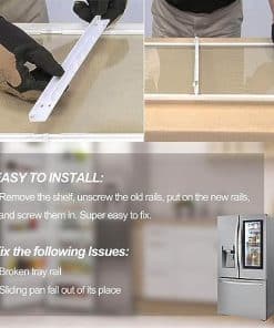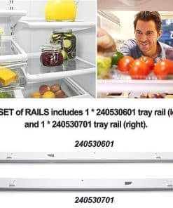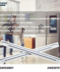 Romalon 240530601 & 240530701 Soportes deslizantes aseguran que todo en su refrigerador esté seguro y en su lugar. Número de Parte Reemplazable: Para el lado izquierdo 240530601 – reemplaza 240460401, PS430916, EAP430916, 917557, AP2116589. Para el lado derecho 240530701 – reemplaza 240460501, AP2116590, PS430917, EAP430917, 917558. Alta Calidad. Soluciona las siguientes Problemas: Riel de la bandeja roto. La bandeja deslizable se cae de su lugar. Asegura un ajuste adecuado. Consejos para un Ajuste Correcto: Asegúrese de poner el número de modelo correcto. ¡Fue súper fácil de arreglar!
