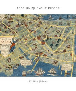 Rompecabezas de 1000 piezas con el Mapa de Salem Massachusetts de 1960 de Scott. Este rompecabezas de alta calidad está hecho a mano con materiales reciclados premium, asegurando un producto ecoamigable. Cada rompecabezas es cuidadosamente ensamblado a mano y empaquetado con esmero, para que no tengas que preocuparte por piezas faltantes. Disfruta de esta obra de arte ilustrada a color que incluye un mapa pictórico detallado de Salem Massachusetts.