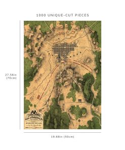 Este rompecabezas de 1000 piezas del Mapa de la Batalla de Gettysburg es una excelente manera de disfrutar de tiempo en familia mientras recreas un momento histórico. Cada pieza está cortada con precisión y hecha con papel de arte mate de alta calidad para un acabado sin brillo. Además, cada rompecabezas es hecho en Oregon con un proceso amigable con el medio ambiente, utilizando adhesivo vegano y tableros de rompecabezas reciclados. ¡Sumérgete en la historia con este rompecabezas único y emocionante!