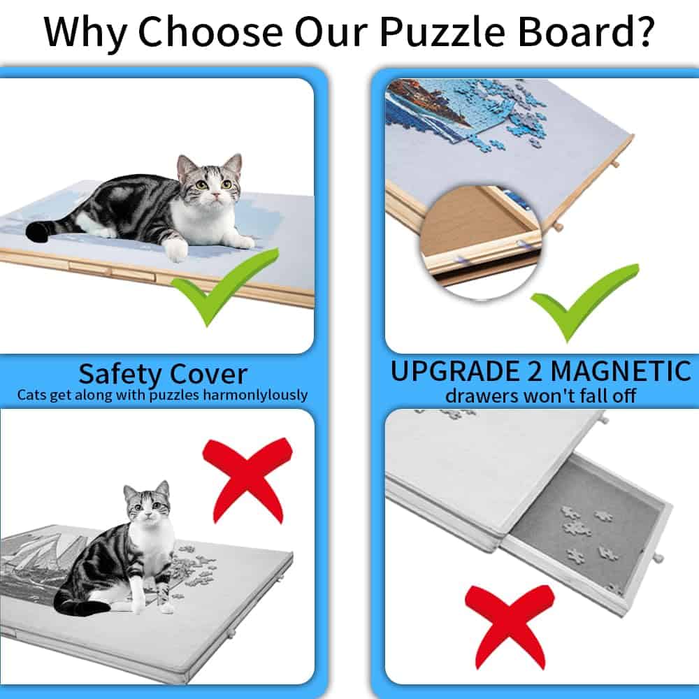 2. Tablero de Rompecabezas de Alta Calidad: Nuestros tableros de 1000-2000 piezas están hechos de madera de alta calidad, materiales duraderos para garantizar un uso a largo plazo. El acabado único suave y sin pintura permite que las piezas del rompecabezas se deslicen con facilidad y firmeza, y puedas disfrutar de la diversión de los rompecabezas.