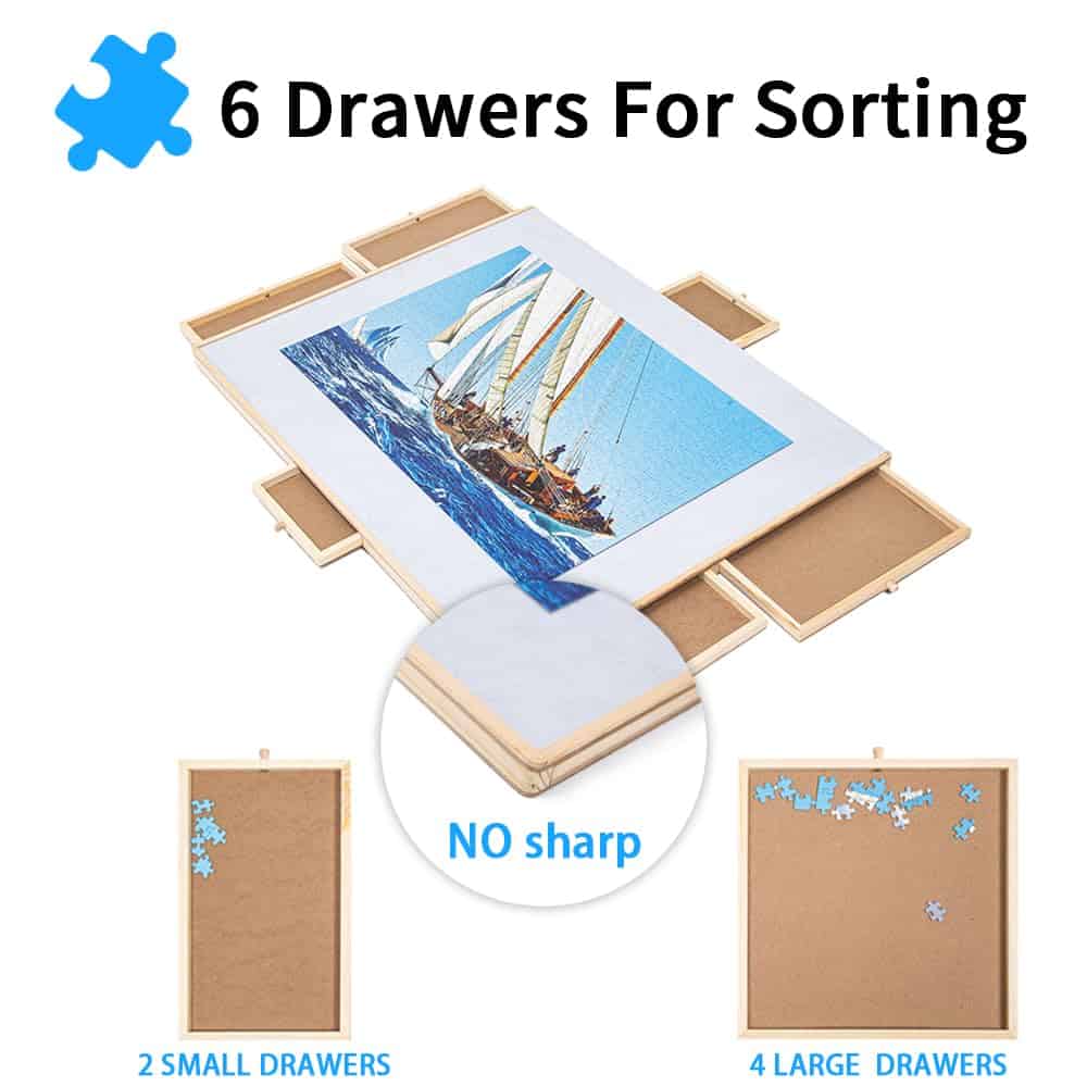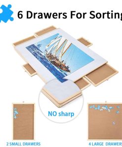 3. Almacenamiento Organizado con 6 Cajones y Cubiertas: Mantén los rompecabezas ordenados con 6 cajones espaciosos, ideales para clasificar por color, tema o borde. Los mangos garantizan una apertura suave, evitando la pérdida de piezas. La cubierta translúcida protege tu obra maestra del polvo, derrames y mascotas.