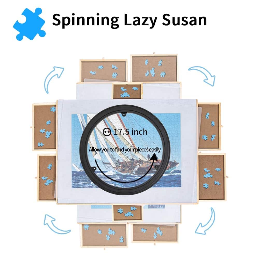 1. Mesa de Rompecabezas Giratoria 360°: Revoluciona tu experiencia de armar rompecabezas con nuestro diseño giratorio. Accede a cada rincón sin esfuerzo, aumentando la eficiencia y la diversión. La rotación suave de 360° te permite armar con facilidad.
