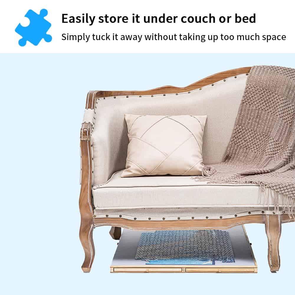 4. Estación de Rompecabezas Versátil y Portátil: Compacta pero versátil, nuestro tablero de rompecabezas se adapta a cualquier espacio – encimeras, mesas de café o incluso exteriores. Almacena y transporta fácilmente, transformándose en un asiento adicional cuando sea necesario. Perfecto para viajes o uso en casa.