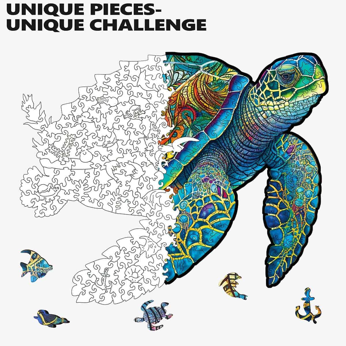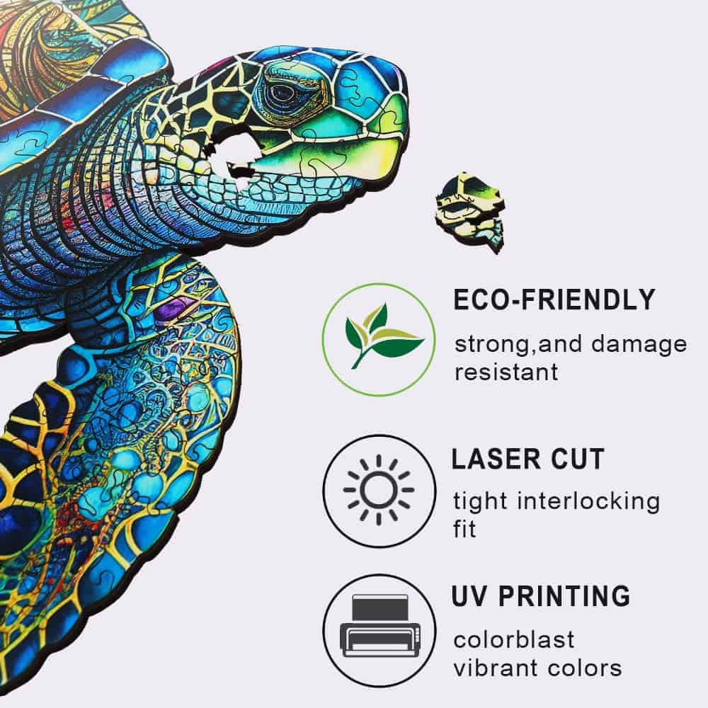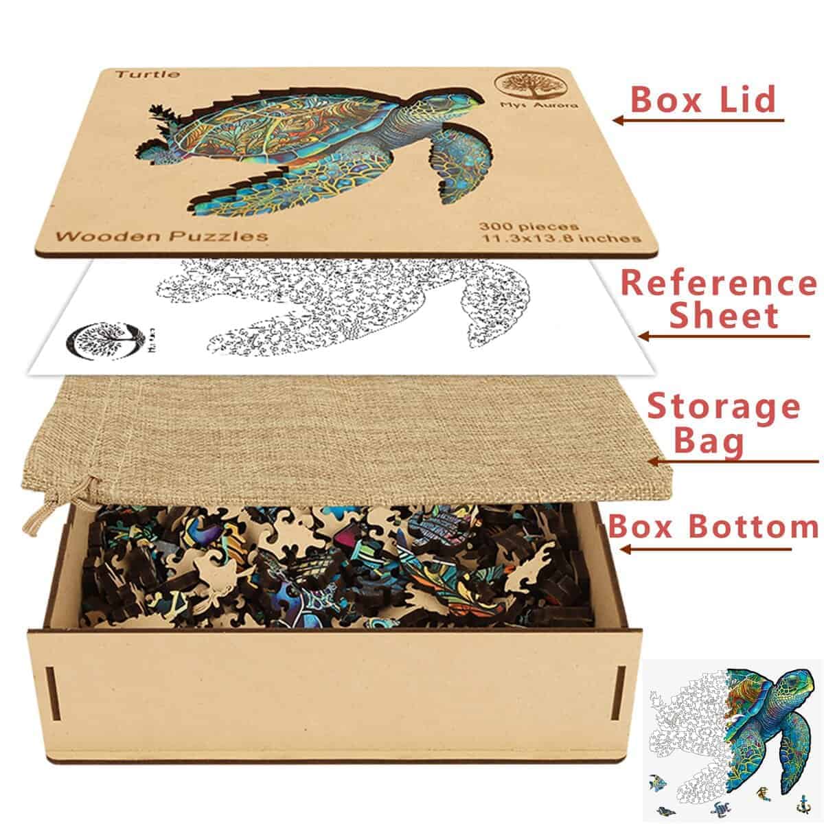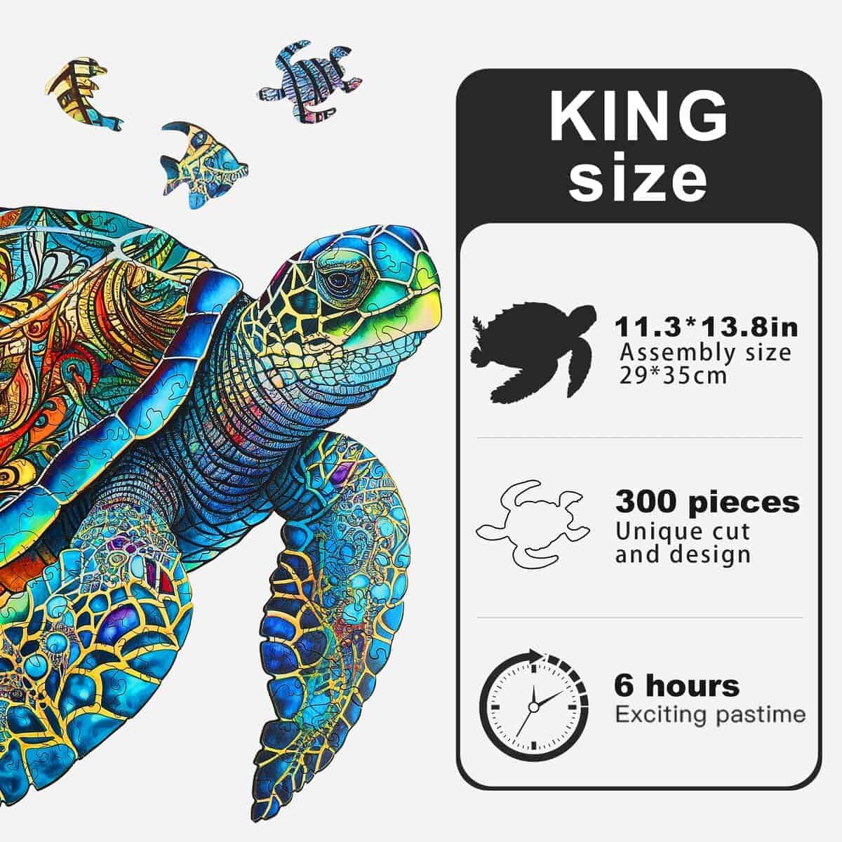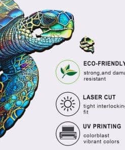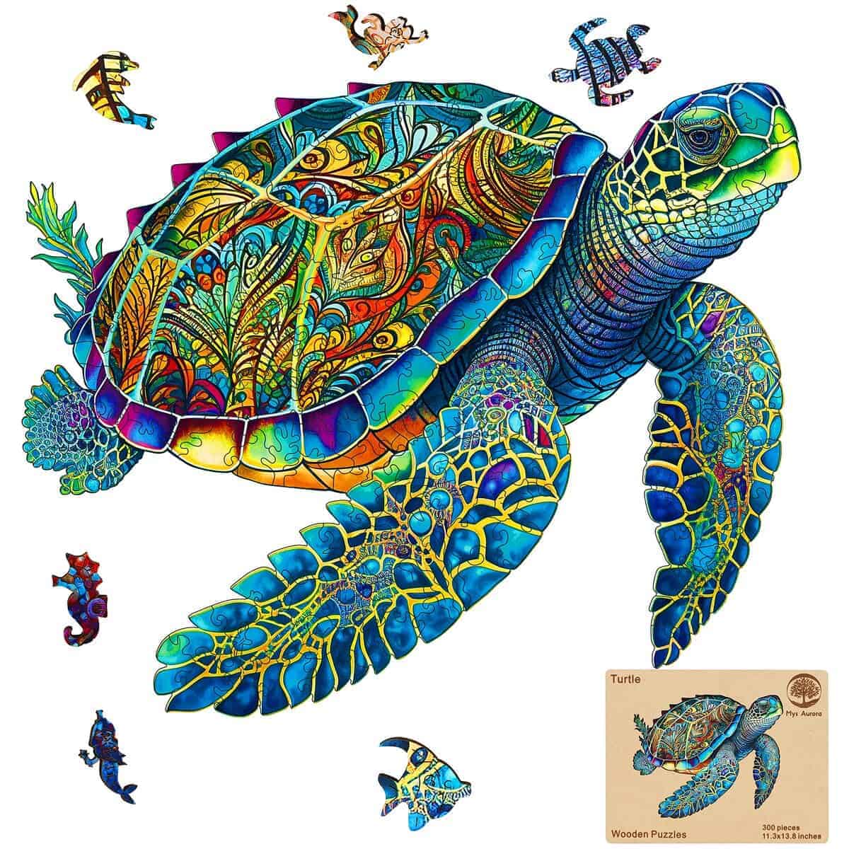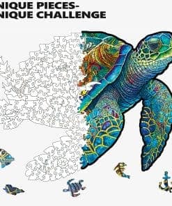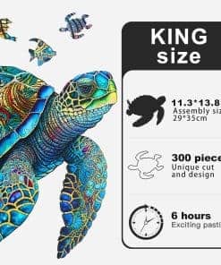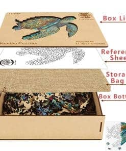 Este rompecabezas de madera de tortuga marina contiene forma única, corte láser, impresión colorida 300 piezas. Empaque en caja hermosa, regalo genial para familia, padres, abuelos, amigos y uno mismo! Control de calidad excelente, garantiza que cada paquete incluya las piezas correctas y no haya pérdida de color, ni defectos. Puzzles de madera ejercicio cerebral, mejora la coordinación entre ojos y manos. Obra de arte terminada enmarcada en la pared o escritorio como decoración del hogar.