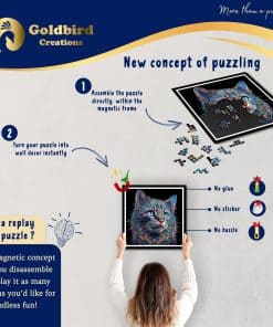 1. CONCEPTO INNOVADOR: Nuestro rompecabezas de madera magnético para adultos con marco incluido ofrece una experiencia única. Las piezas magnéticas se conectan fácilmente y se adhieren perfectamente al marco, haciendo que el montaje sea sencillo. Muestra tu obra maestra terminada sin necesidad de pegamento, pegatinas o un marco adicional. Esta no solo es una manera creativa de disfrutar de rompecabezas de madera, sino también una solución económica para una impresionante decoración de pared en tu sala de estar o dormitorio.