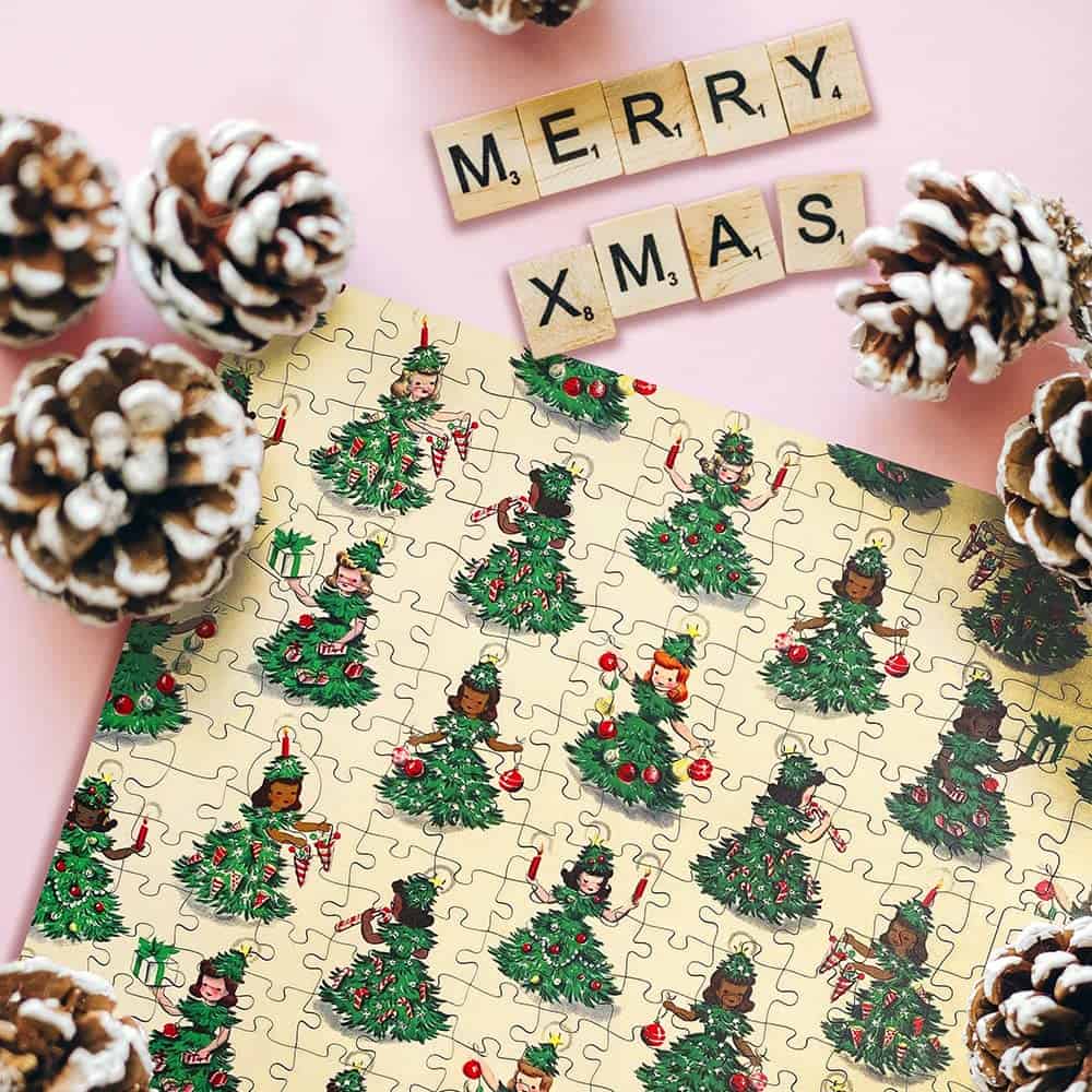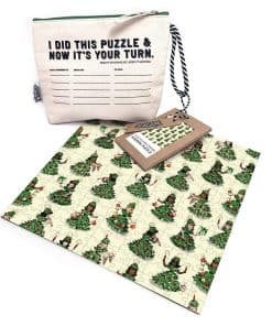 Rompecabezas de madera de 250 piezas en la bolsa perfecta para regalar a amigos o familiares. Vuelve a regalar para compartir la alegría. Manténlo en movimiento cada temporada navideña. Estos rompecabezas vienen autoenvueltos y con etiqueta de regalo, lo que te permite compartir fácilmente con amigos o familiares después de completarlos. Llamamos a la bolsa de transporte de lona de lujo forrada de satén la Bolsa de Reutilización. No solo sirve como un hermoso contenedor de rompecabezas, (¡un rompecabezas en una caja de cartón nunca!), también invita a etiquetar tu regalo de una manera única: literalmente escribe tu nombre y la fecha en que completaste el rompecabezas en la propia bolsa, luego finaliza con el nombre del destinatario. Contiene un total de 250 piezas, incluyendo 6 piezas de Tesoro diseñadas exclusivamente. Busca el calendario, y las piezas de Tesoro 2 y 5 en este rompecabezas navideño, perfecto para regalar o crear una divertida y nueva tradición de rompecabezas navideños. Se incluye un exclusivo Pin de la Completación del Rompecabezas para logros, en este rompecabezas. Coloca esta pieza en su lugar al final para darte una pequeña palmada en la espalda. ¿Puedes guardarla tanto tiempo? Tamaño del rompecabezas completado 11.5″ x 11.5″. La bolsa mide 7.75″ x 6.25″, además de la correa de transporte. Un regalo de herencia que muestra su historial de re-regalo a medida que viaja. Cortado con amor en madera real con láseres intrincados. Las piezas de madera se colocan en su lugar en lugar de ser presionadas como los rompecabezas de cartón producidos en masa de hoy en día. La experiencia es única, proporcionando un satisfactorio ‘cliqueo’ con cada pieza colocada. Materiales: (Bolsa) Lona de algodón + Satén de poliéster + Cuerda de algodón + Nylon + Aleación de zinc; (Pin) Aleación de Zinc + Resina; (Rompecabezas) Madera de álamo. No contiene formaldehído.