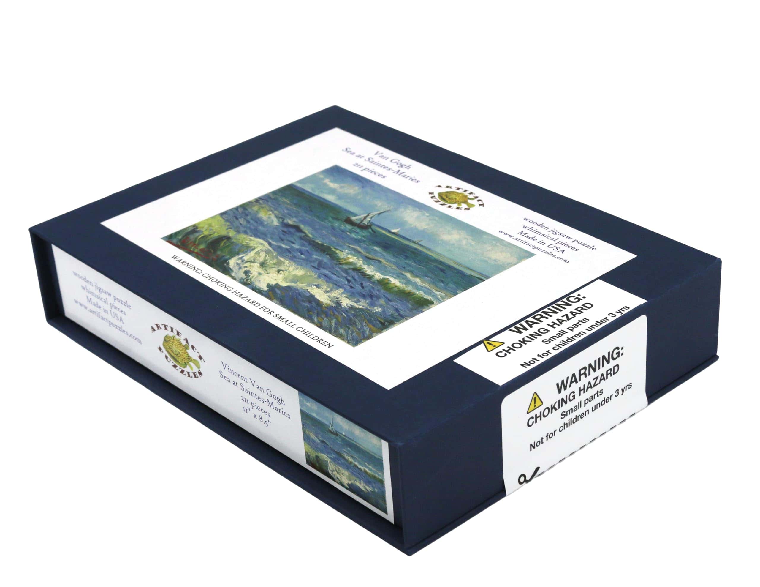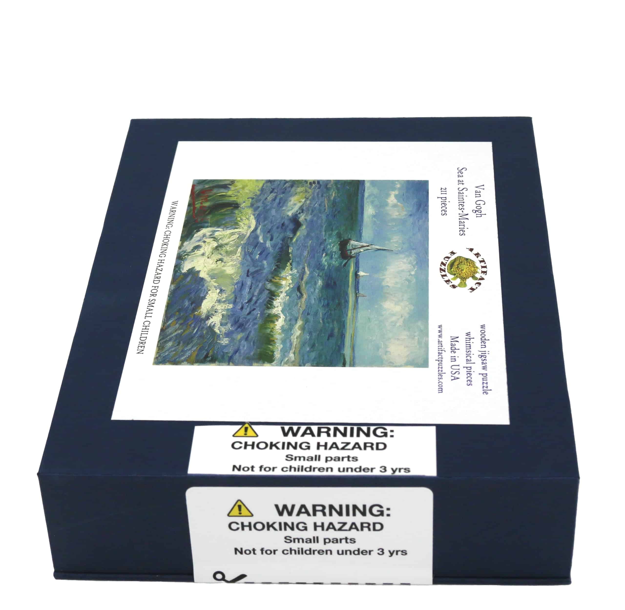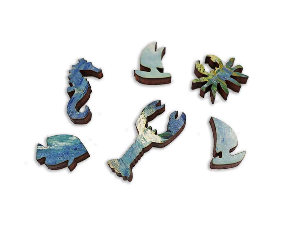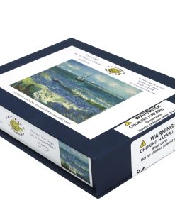 Este rompecabezas de 211 piezas es de uno de los famosos paisajes marinos de Vincent Van Gogh. El rompecabezas tiene un borde festoneado y piezas temáticas marinas diseñadas por Tara Flannery. Este rompecabezas es más difícil de lo normal. Como todos nuestros rompecabezas, está hecho de madera de 1/4″ y cortado con láser en EE. UU. Empaquetado en una caja pequeña con cierre magnético.