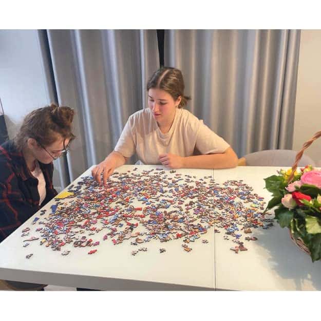 4. ARTE DE PARED DE ROMPECABEZAS ÚNICO – ¿Te gusta el aspecto de los mosaicos? ¿Por qué no crear tu propio diseño? Convierte tu rompecabezas de madera favorito en una obra de arte en pared pegándolo y enmarcándolo.