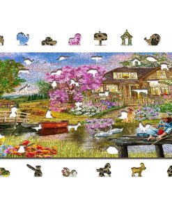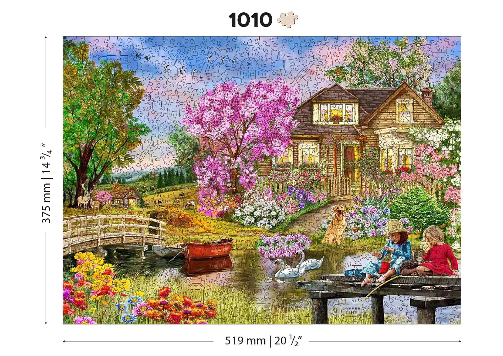 «Escape al campo y pase una tarde de primavera tranquila en una casa de campo junto al lago rodeada de flores con este rompecabezas de campo de 1.010 piezas únicas. Organiza tu propia fiesta de rompecabezas con amigos para resolver este emocionante puzzle de flores. Incluye piezas únicas en forma de criatura que te desafiarán a encontrarlas todas. Presume tu último proyecto de rompecabezas convirtiéndolo en una obra de arte personalizada en tu pared. ¡Un regalo perfecto para los amantes de los juegos que disfrutarán de este rompecabezas único y creativo!»