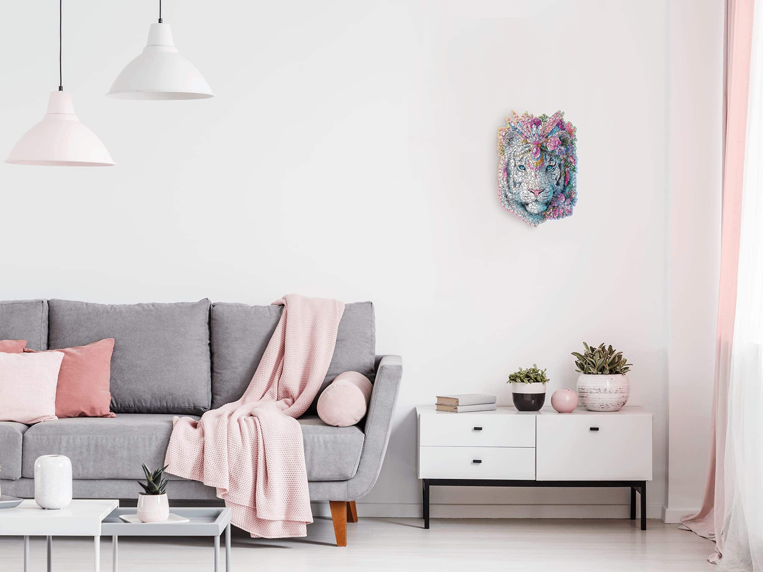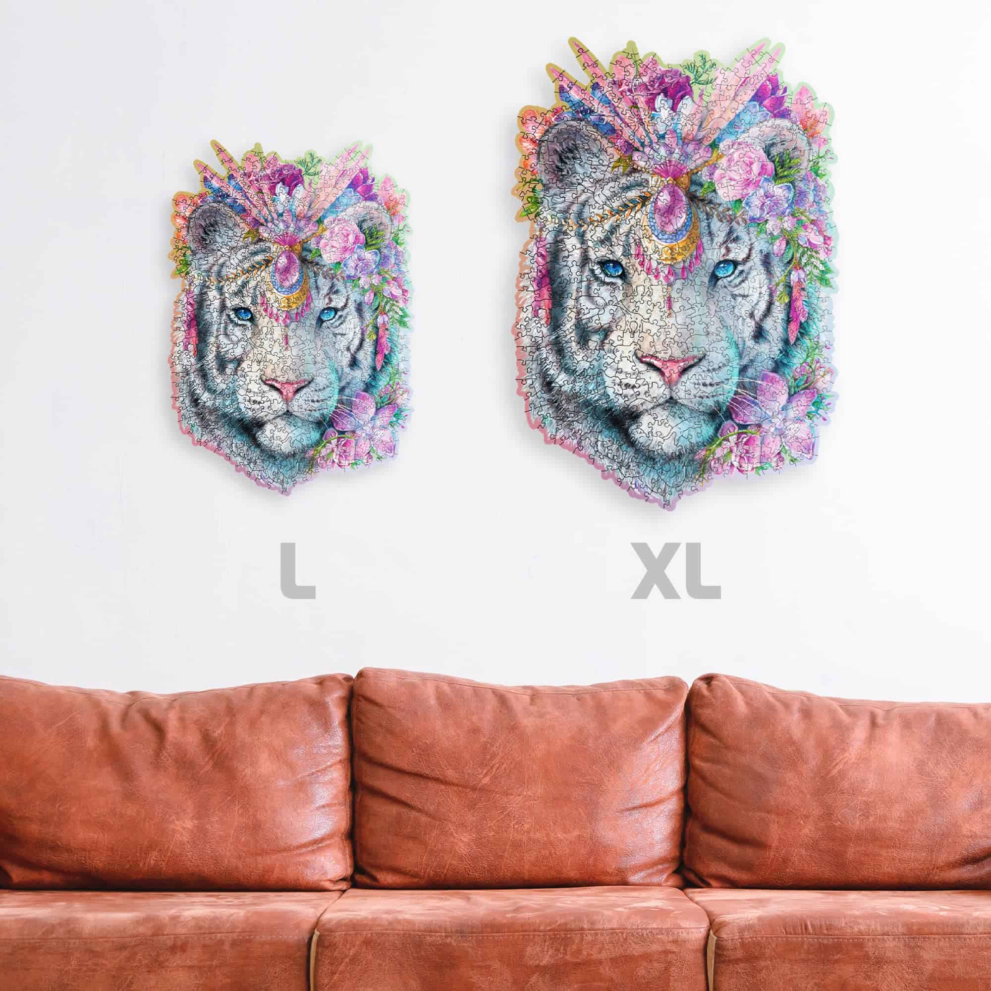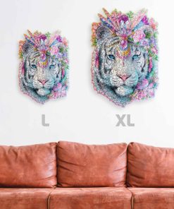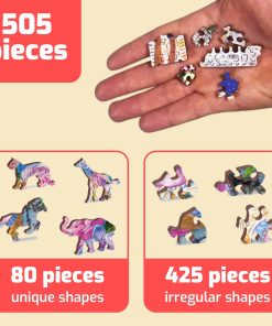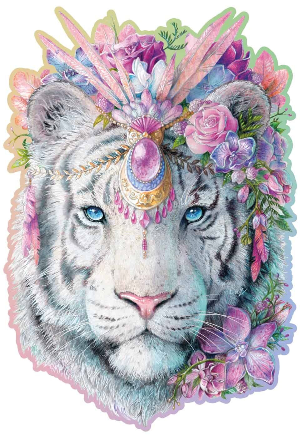 1. ¡DISFRUTA DE UNA AVENTURA SALVAJE – Forma un mágico tigre blanco con el rompecabezas del rey tigre. Cada rompecabezas único está compuesto por 505 piezas, algunas de las cuales son puzzles con formas de animales. La forma del rompecabezas es la cabeza de un tigre.