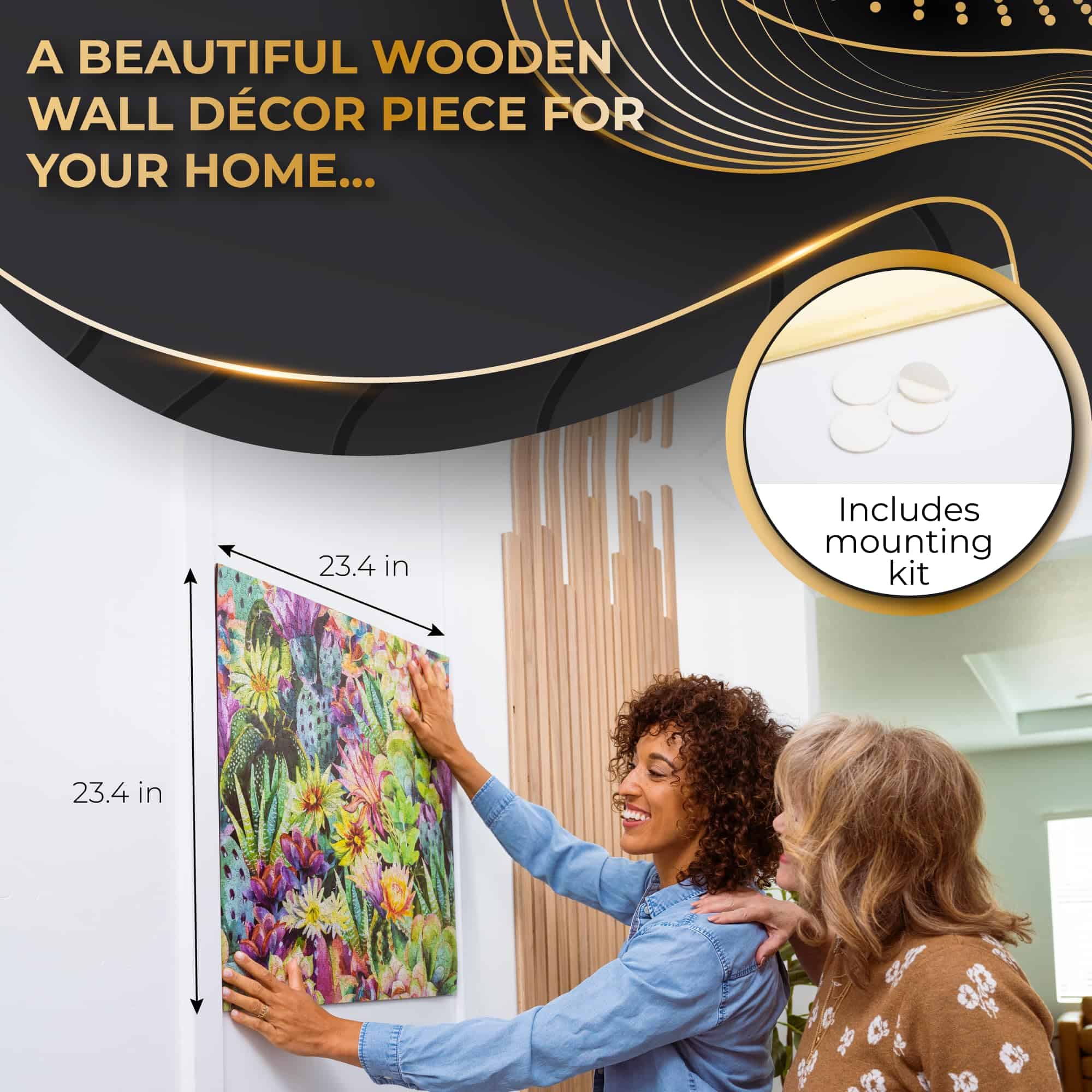 5. Arte de pared de madera botánica: Llena tu espacio con el encanto de los cactus en flor y flores vibrantes con nuestro hermoso rompecabezas Floral Cactus. Viene completo con un kit de montaje para que puedas convertirlo en una pieza decorativa de pared de madera en cuestión de minutos. ¡Simplemente admira su cautivadora belleza exótica!
