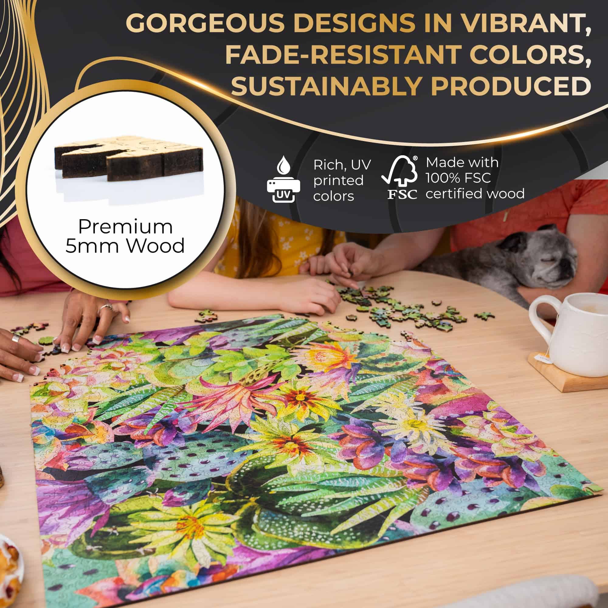 Rompecabezas de madera ZenChalet Floral Cactus para adultos