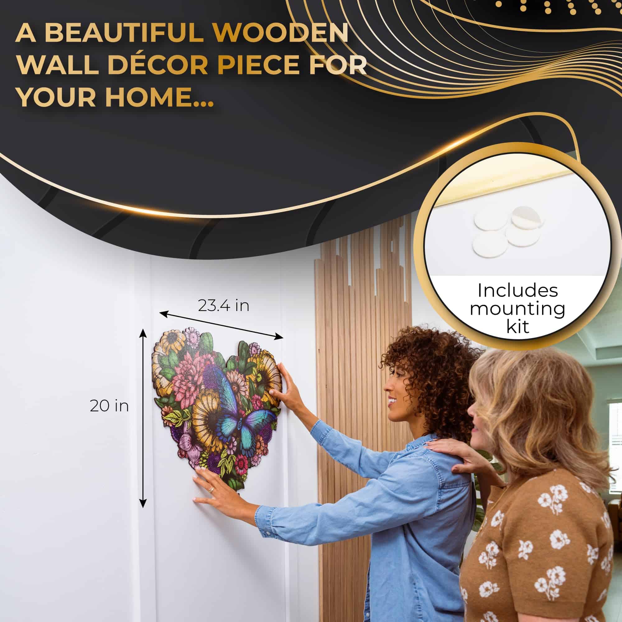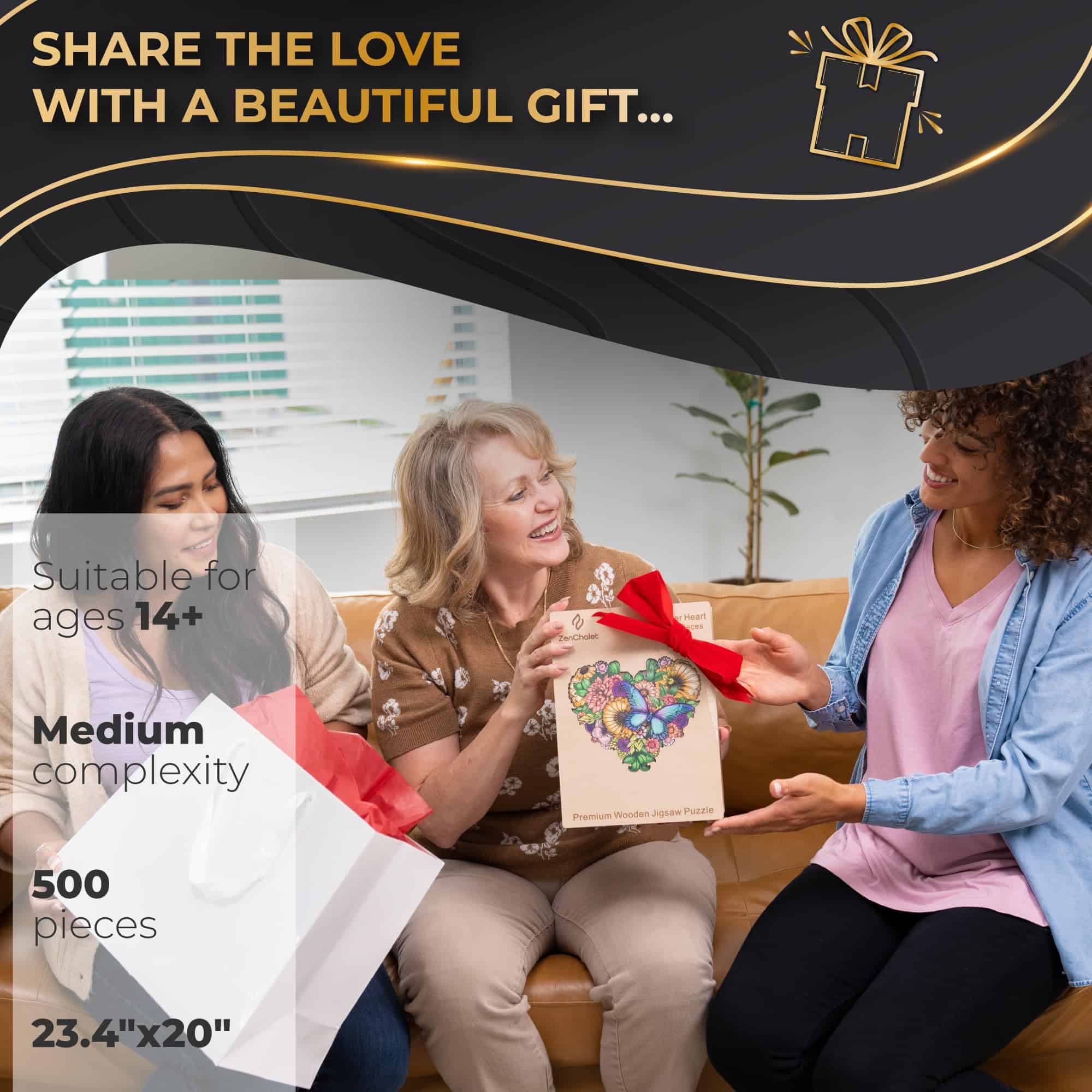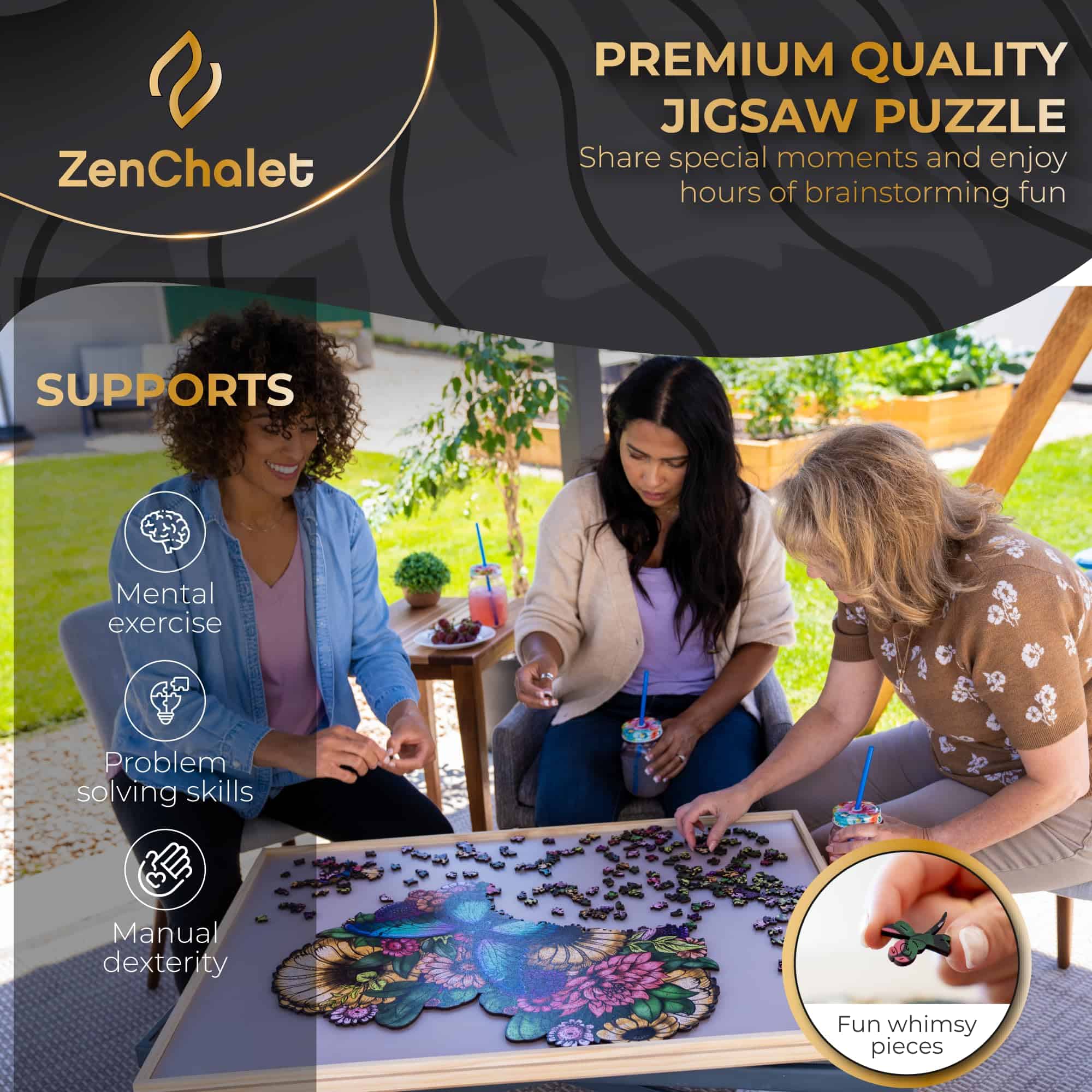 1. Belleza con un corazón: Sumérgete en la encantadora belleza de nuestro rompecabezas Flower Heart. Su forma única y diseño floral vintage elevarán tu espíritu mientras sus divertidas piezas te mantienen alerta!. 2. Regalo atemporal de deleite: Regala momentos preciosos con nuestro rompecabezas de madera Flower Heart premium. Perfecto para relajarse solo o para pasar las horas con seres queridos, es el regalo perfecto para el Día de la Madre, Navidad, cumpleaños, ¡o simplemente para decir gracias!. 3. Estimulación mental, escape sereno: Involucra tu mente en un encantador desafío mental mientras encuentras un escape sereno en el mundo cautivador de nuestro rompecabezas Flower Heart. Experimenta la combinación perfecta de compromiso mental desafiante y relajación tranquila mientras tomas un descanso de tu rutina diaria. 4. Belleza futurista: Cada uno de nuestros rompecabezas está hecho de madera obtenida de fuentes sostenibles y está diseñado para perdurar. Piezas robustas y cortadas con precisión que no se deformarán hacen que tu rompecabezas ZenChalet sea un verdadero objeto de herencia para pasar de generación en generación. ¡Únete a nosotros en nuestra misión de cuidar nuestro planeta, pieza a pieza!. 5. Decoración artística de pared: Transforma tu espacio en un refugio de elegancia y belleza con nuestros magníficos rompecabezas. Hemos incluido un kit de montaje para que puedas convertir rápidamente tu rompecabezas en una pieza única de decoración de pared de madera. ¡Exhíbelo solo, o como un conjunto de tres, y lleva algo de magia floral a cualquier habitación de tu hogar!