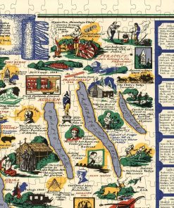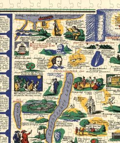 Rompecabezas Finger Lakes de 1000 piezas para adultos que muestra un hermoso mapa de 1962 de la región de Finger Lakes en el centro de Nueva York. Con un tamaño terminado de 27.56 x 19.68 pulgadas (70x50cm), este rompecabezas está hecho con piezas de alta calidad de 1,5mm de grosor que garantizan un ajuste apretado y de calidad heredada. Fabricado con material 100% reciclado, este rompecabezas es ecológico y cuida el medio ambiente. Cada rompecabezas es handcraft con los materiales reciclados de mayor calidad, confeccionamos cada caja profesionalmente a mano y los empaquetamos cuidadosamente uno por uno para garantizar que no falten piezas. El rompecabezas cuenta con un acabado mate de arte fino sin brillos para facilitar el montaje bajo luz directa. Nota: ¡Este rompecabezas es para adultos y no es adecuado para niños!