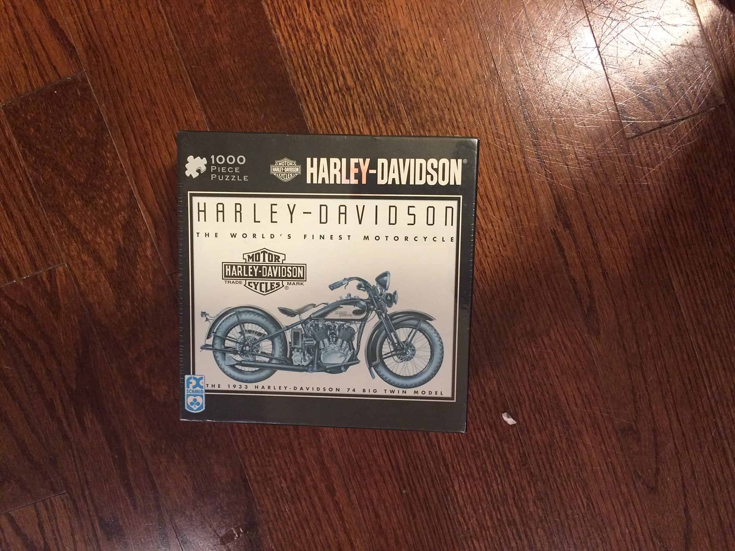 Rompecabezas del emblemático modelo 74 Big Twin de 1933 de Harley Davidson. Perfecto para los amantes de las motocicletas clásicas y los rompecabezas desafiantes.