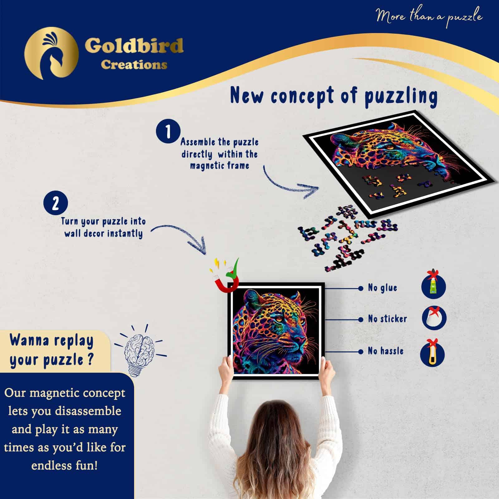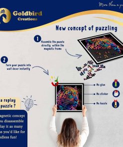 1. Concepto Innovador: Nuestro rompecabezas y set de marco incluido ofrece una experiencia única. Las piezas magnéticas se unen fácilmente y se adhieren sin problemas al marco incluido para una experiencia de juego sin complicaciones. Luego puedes exhibir con orgullo tu obra maestra terminada sin la necesidad de pegamento, pegatinas o un marco adicional. No solo es una forma creativa de resolver rompecabezas, sino también una solución económica para una decoración excepcional de pared en tu sala de estar o dormitorio.