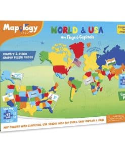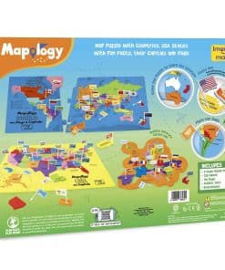 2. PIEZAS DE ROMPECABEZAS EN FORMA DE PAÍSES Y ESTADOS CON BANDERAS Y DATOS: Este rompecabezas de mapas de EE. UU. y del mundo está cortado en formas reales de estados y países. Los niños los unen, comprendiendo formas y tamaños. Esto ayuda a fomentar el conocimiento de geografía, conciencia espacial y es uno de los mejores juguetes para la resolución de problemas para niños de 8 a 12 años. Este rompecabezas dobla la diversión, ya que este juguete para edades de 5-7 años incluye pegatinas de capitales y banderas con nuevos datos divertidos sobre estados y países del mundo.