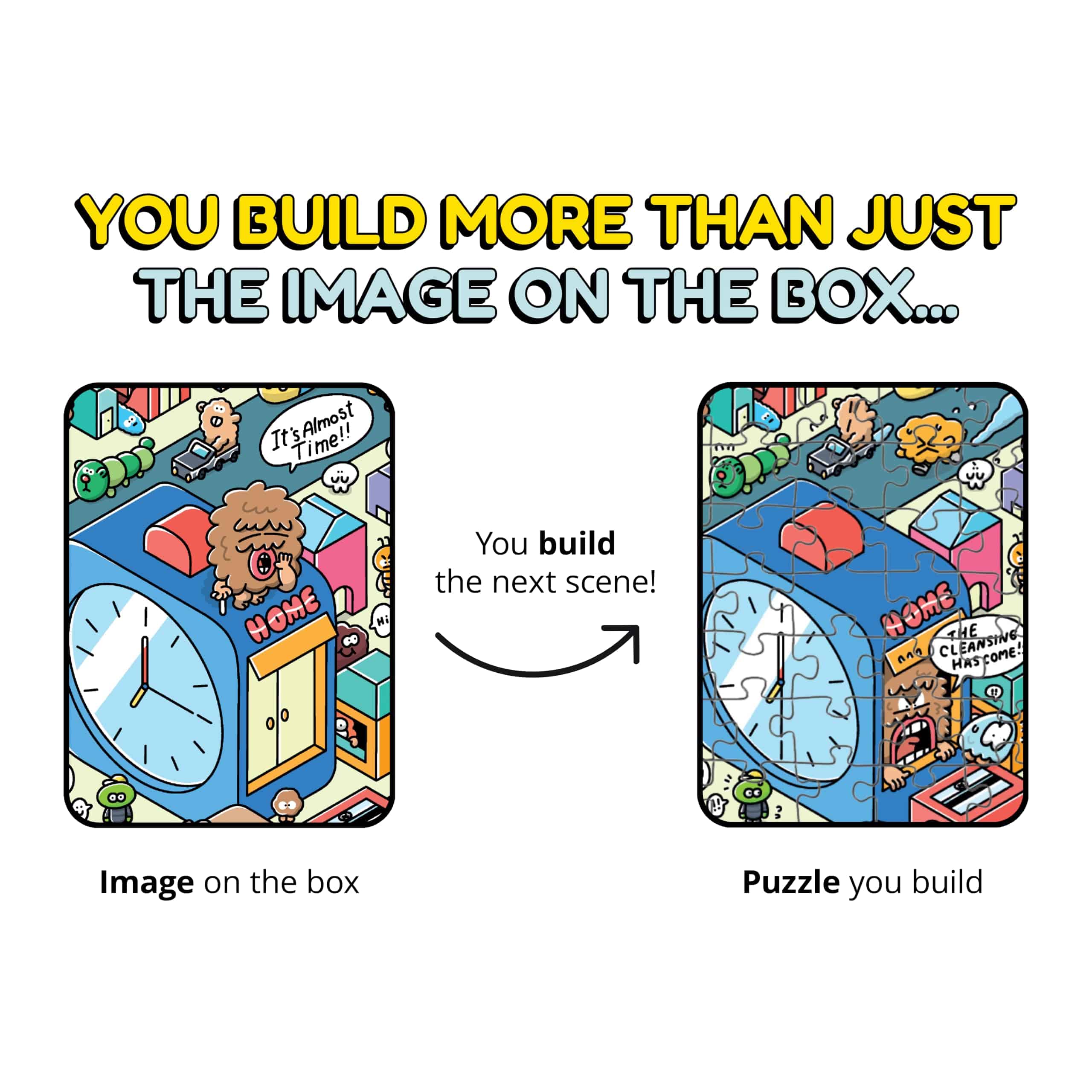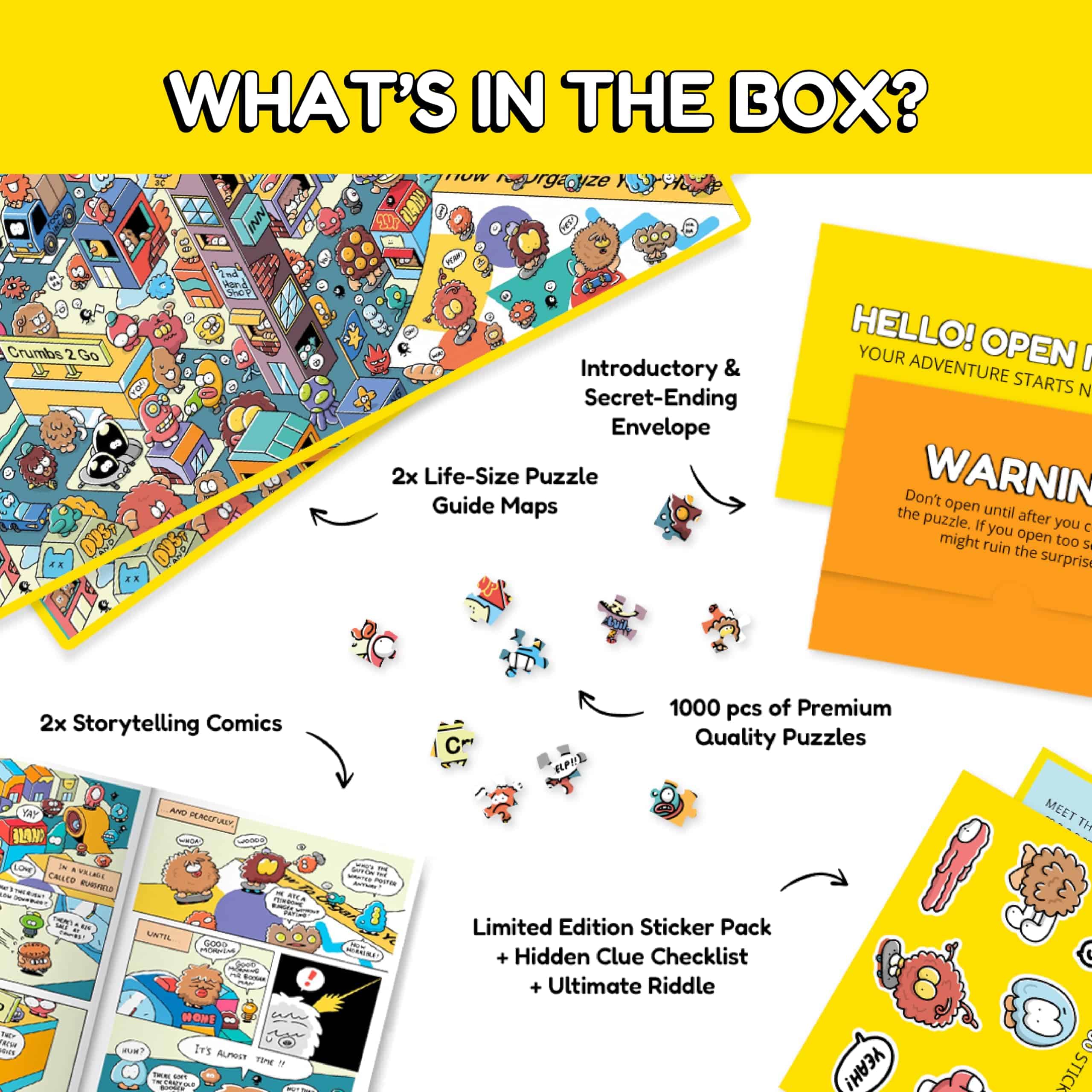 2. Es un juego de puzle: Ensamblas las pistas, secretos y mini historias poco a poco, hasta que finalmente descubres el final secreto. ¡La imagen en la caja no es exactamente lo que construyes. Establece la escena, pero el rompecabezas de 1000 piezas completado muestra la escena final!.